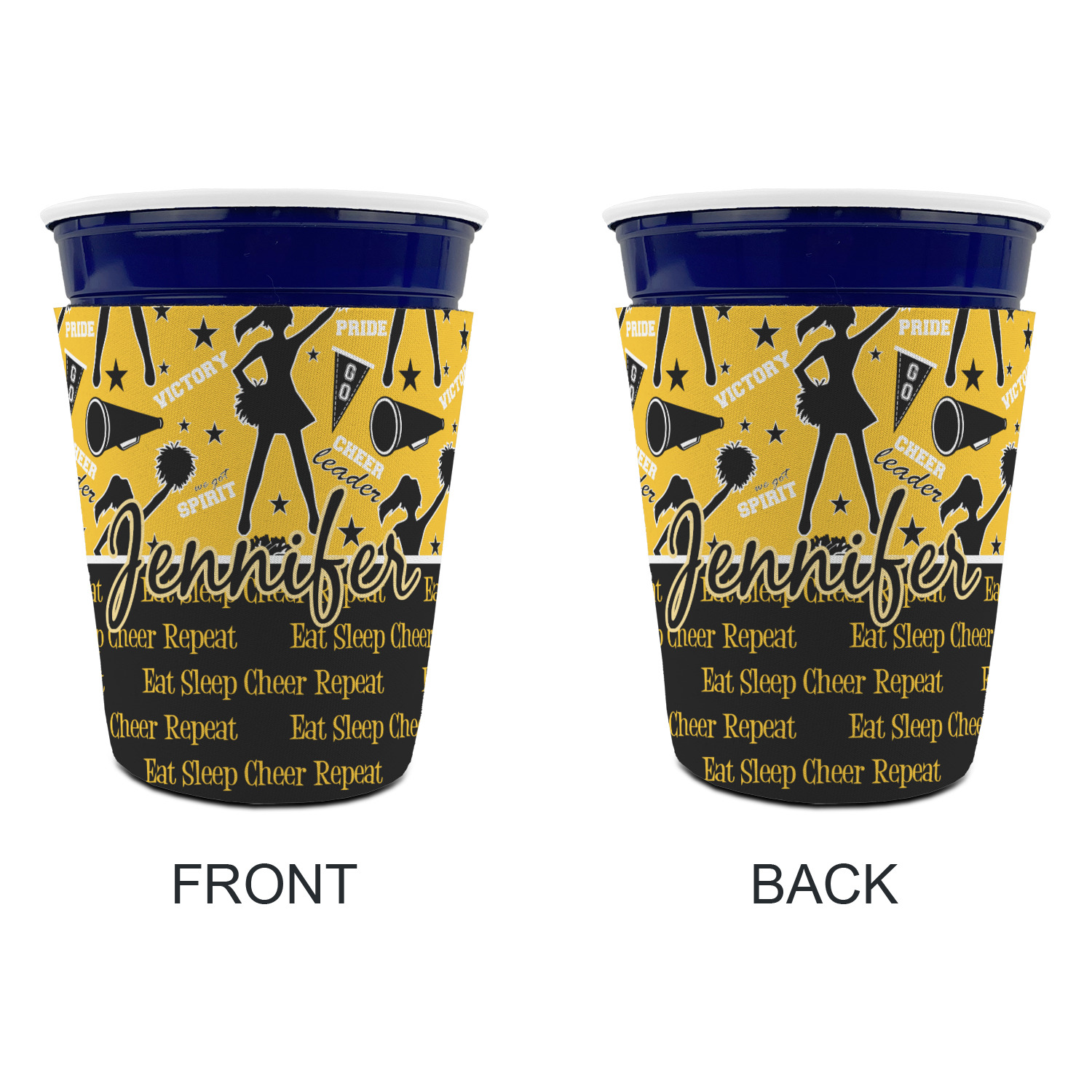 Made from neoprene with a polyester outer fabric and sewn seams, these premium quality party cup sleeves are very durable and will hold up to heavy use. They are available in 2 styles - with a bottom or just a sleeve to go around the outside of the tapered cup. The sleeve covers are about 4" tall and cover about 90% of the classic 16 oz. Solo cup.