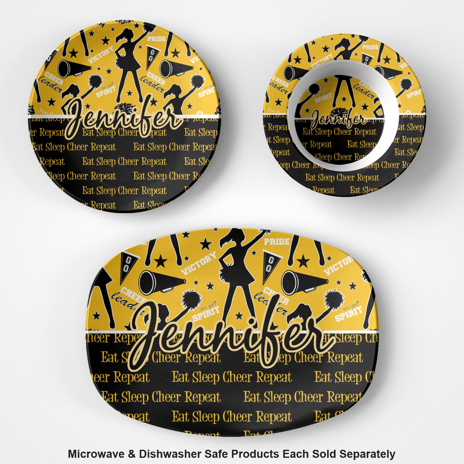 Made from a composite, thermo-set, polymer plastic, these dinner bowls have the versatility, durability, and weight of a melamine bowl without any of the downsides of melamine. Unlike melamine dinnerware, these bowls can withstand high heat. These custom plastic bowls can even handle temperatures of up to 250 degrees Fahrenheit, for up to 60 minutes. The pieces of our plastic dinner set are never made with harmful chemicals, such as BPAs, formaldehyde, DEHPs. We display your personalization on the base of this bowl's interior, while the bowl itself has an 8.75" diameter and is 1.75" tall.