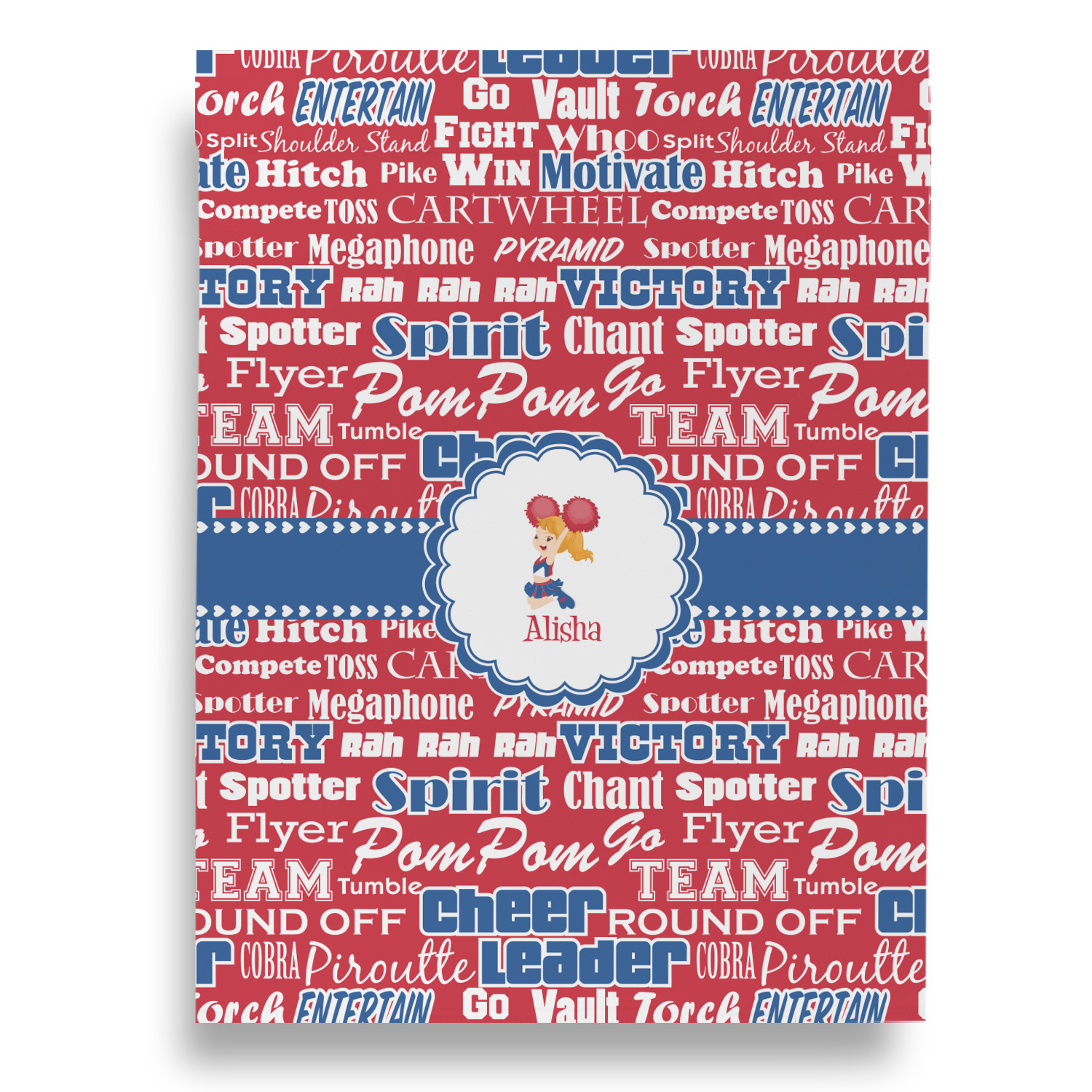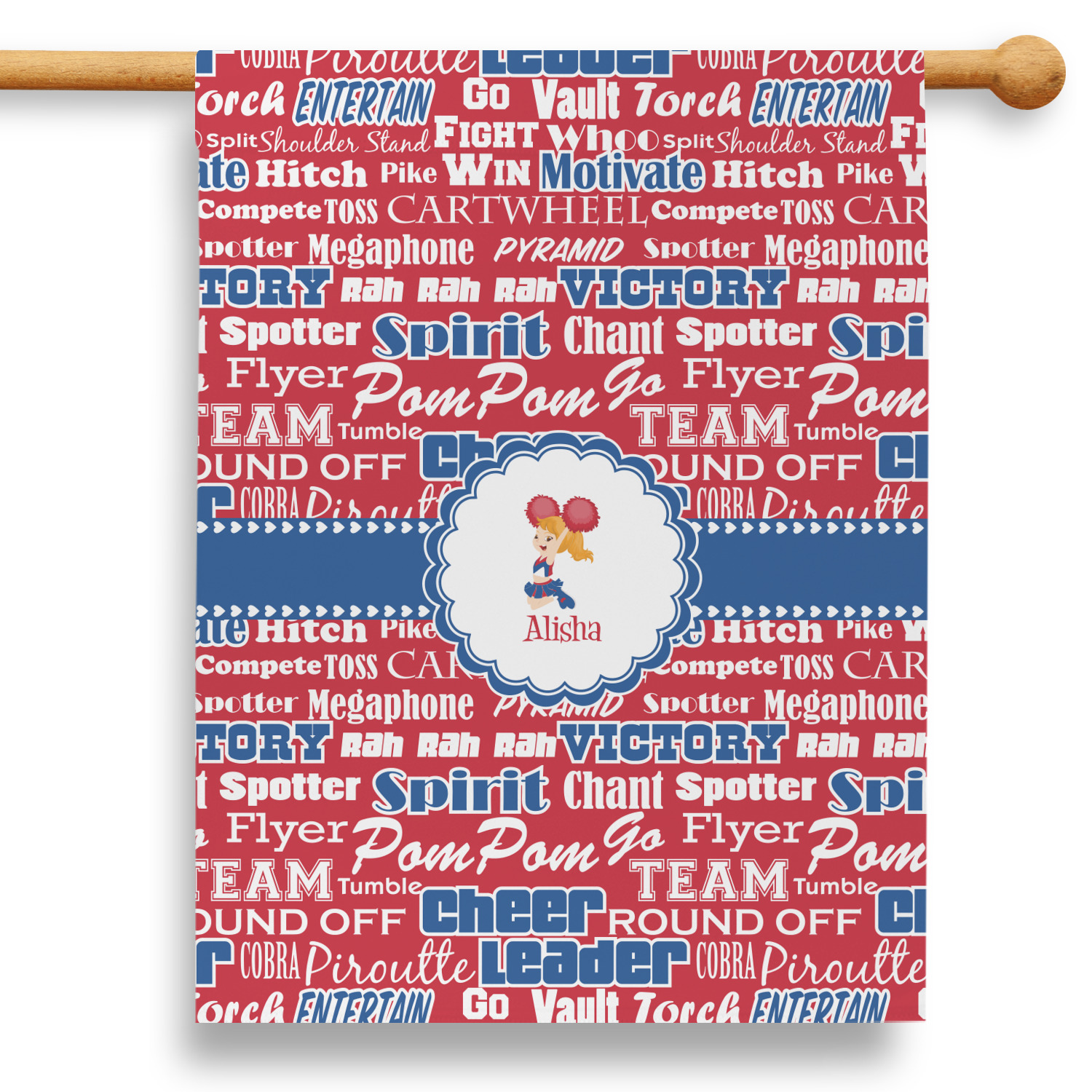 This design is perfect for cheerleaders. The background of the design is a word cloud of cheer words - words such as spirit, victory, team, cheer leader, pom pom and so many more. The background is fully re-color-able - so you can color it with your team's colors. We chose red, blue and white as those are our school's colors!
