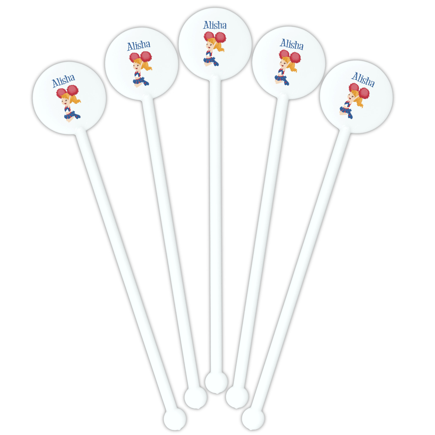 We chose a blue ribbon with hearts, along with a scalloped circle label; and then we chose a cheerleader graphic and with her name below for personalization. The cheerleader's uniform, hair and skin color can also be customized.
