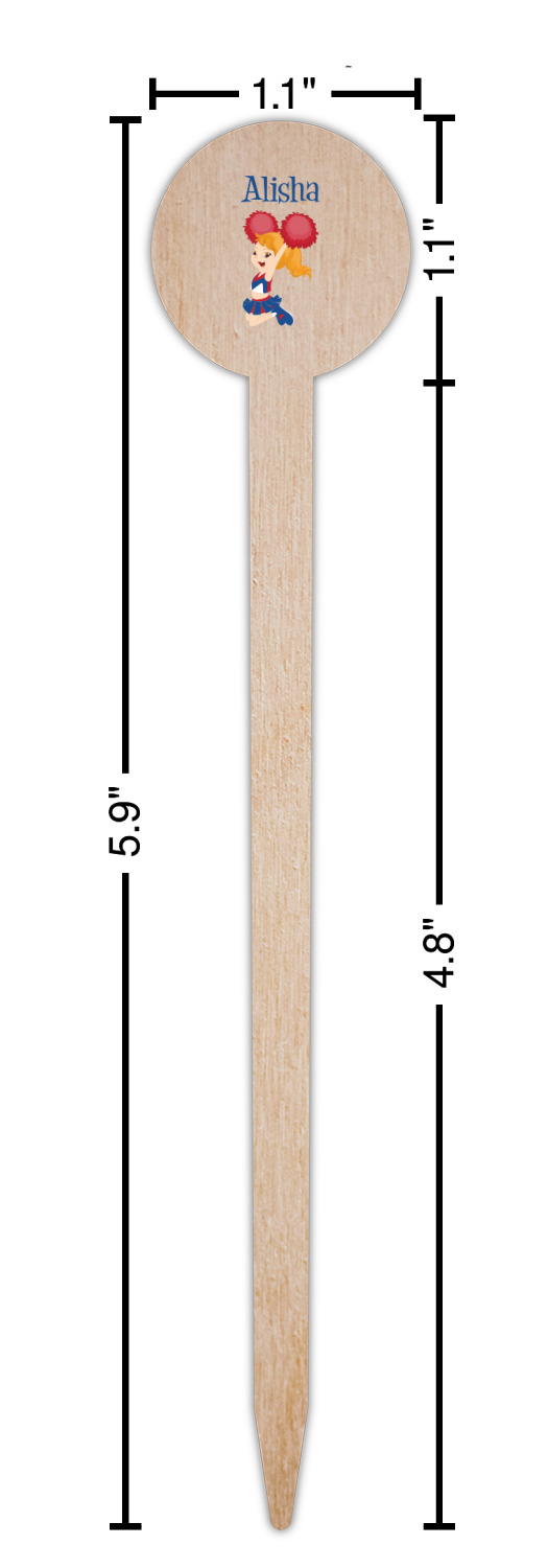 We chose a blue ribbon with hearts, along with a scalloped circle label; and then we chose a cheerleader graphic and with her name below for personalization. The cheerleader's uniform, hair and skin color can also be customized.