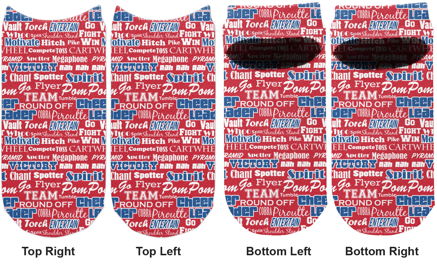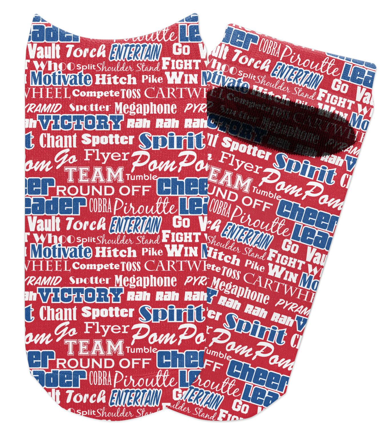 This design is perfect for cheerleaders. The background of the design is a word cloud of cheer words - words such as spirit, victory, team, cheer leader, pom pom and so many more. The background is fully re-color-able - so you can color it with your team's colors. We chose red, blue and white as those are our school's colors!