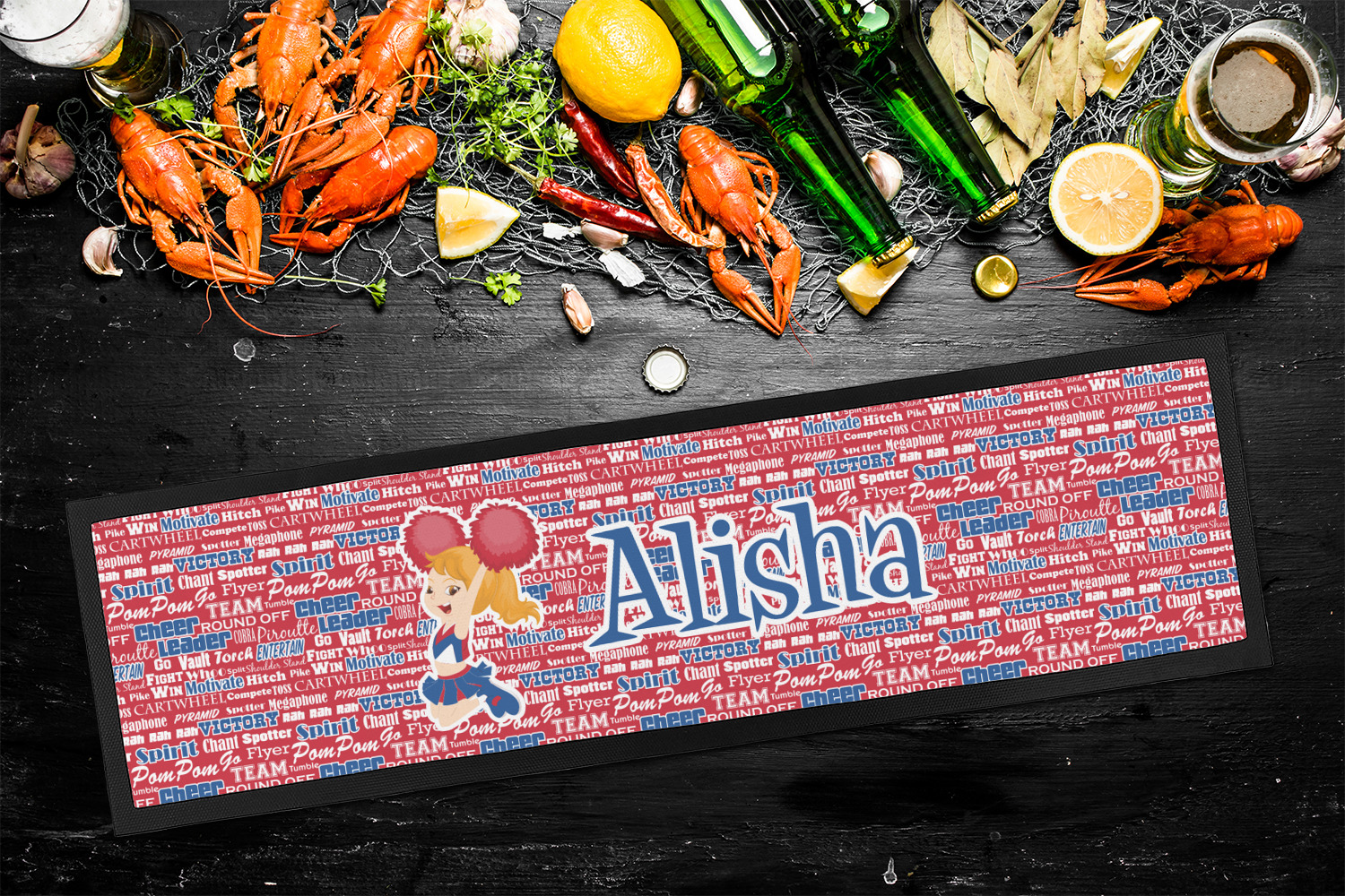This design is perfect for cheerleaders. The background of the design is a word cloud of cheer words - words such as spirit, victory, team, cheer leader, pom pom and so many more. The background is fully re-color-able - so you can color it with your team's colors. We chose red, blue and white as those are our school's colors!