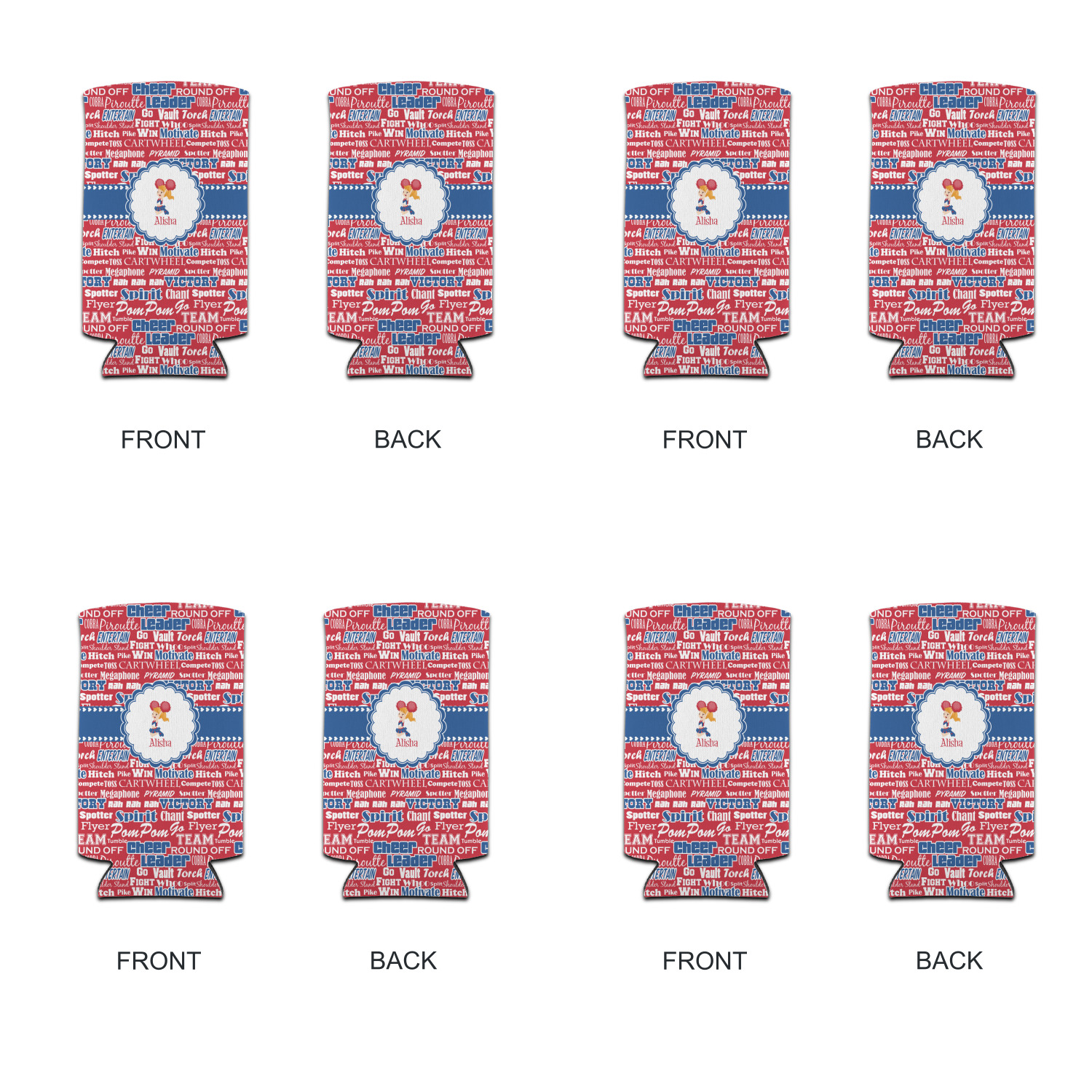 This design is perfect for cheerleaders. The background of the design is a word cloud of cheer words - words such as spirit, victory, team, cheer leader, pom pom and so many more. The background is fully re-color-able - so you can color it with your team's colors. We chose red, blue and white as those are our school's colors!