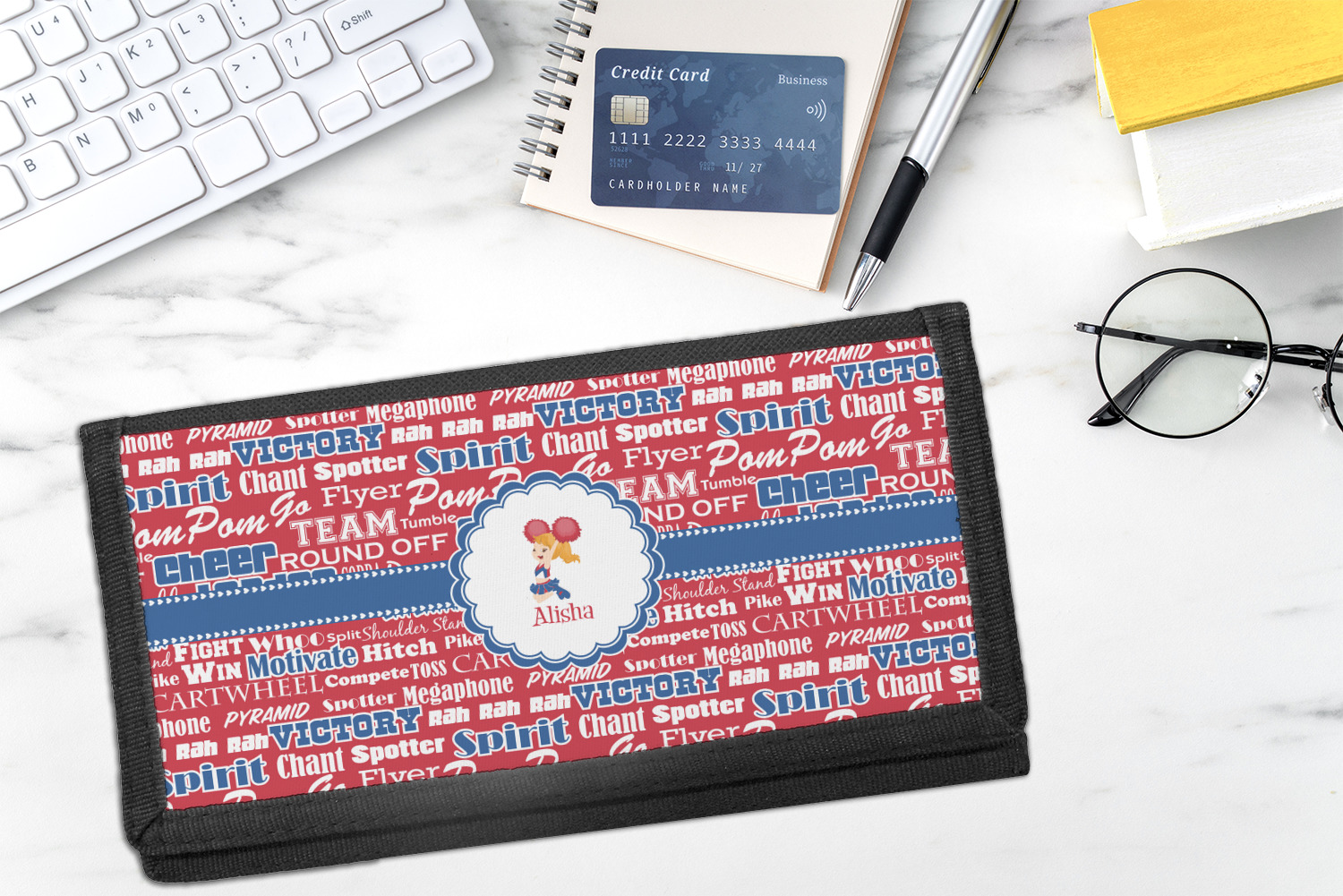 The checkbook cover is made of a durable canvas and the front flap is decorated with a vibrant design of your choosing. With 4 slots for credit cards or IDs, and 2 compartments for your checkbook register, cash, receipts, business cards, and more; this checkbook cover could easily double as a wallet.
