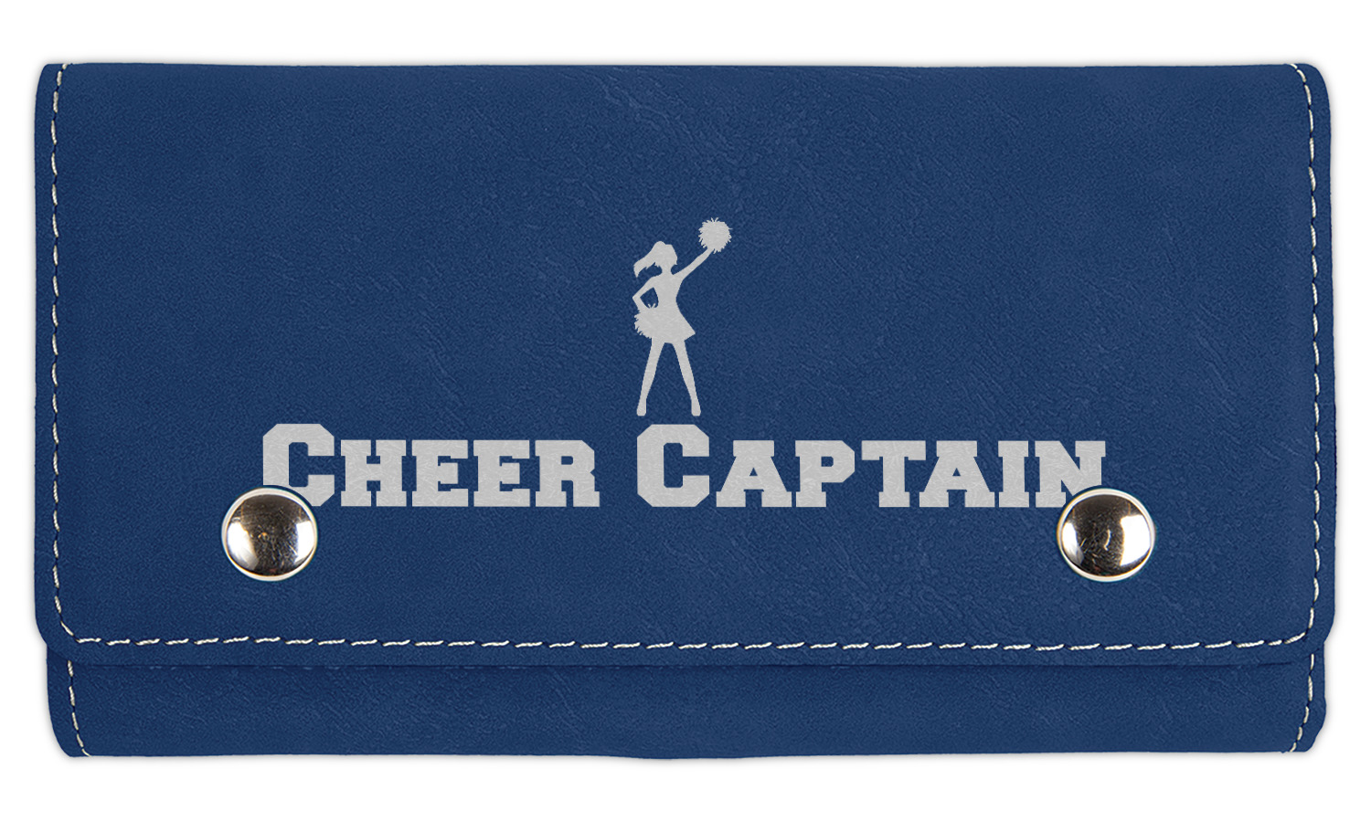 We chose a blue ribbon with hearts, along with a scalloped circle label; and then we chose a cheerleader graphic and with her name below for personalization. The cheerleader's uniform, hair and skin color can also be customized.