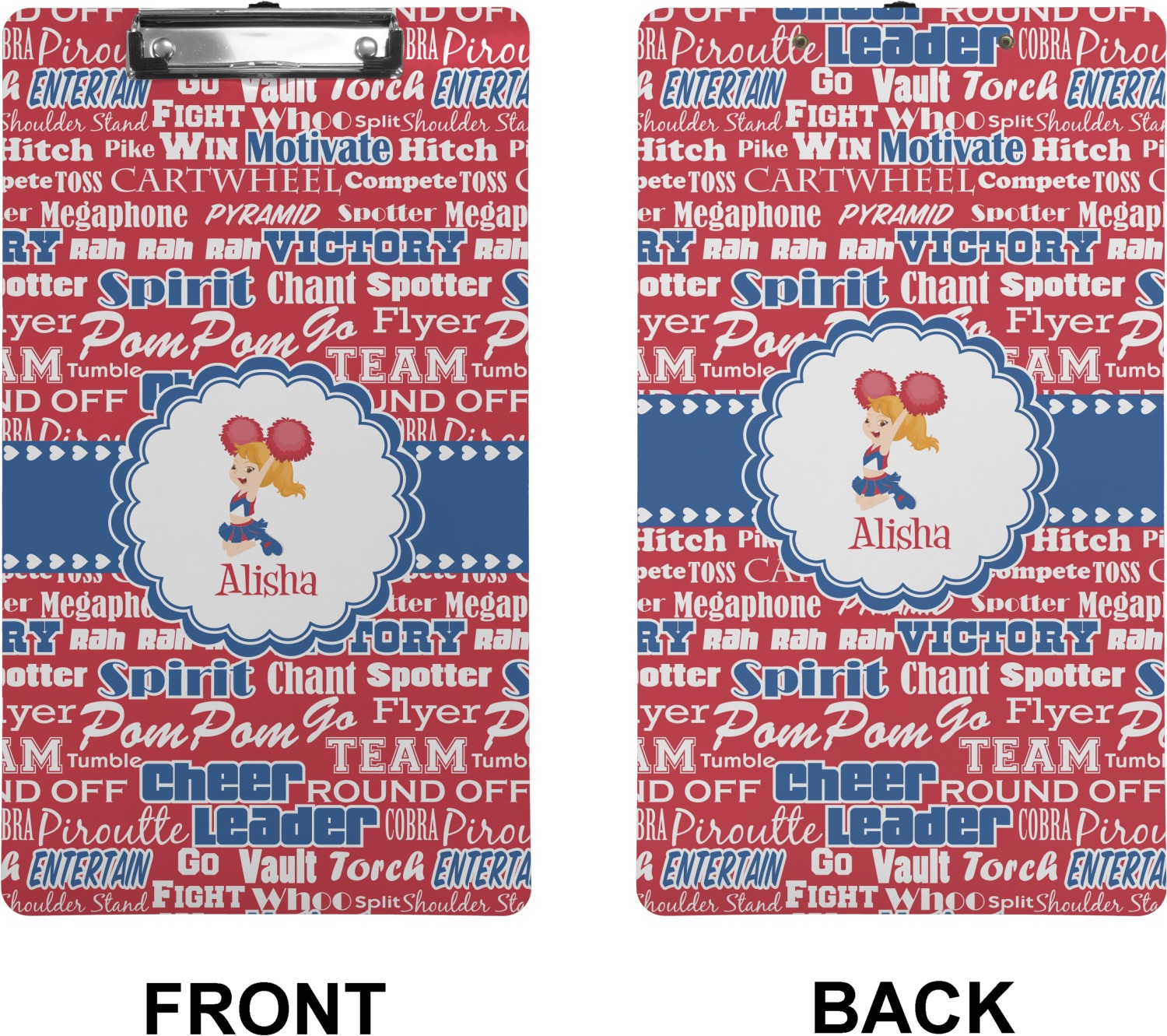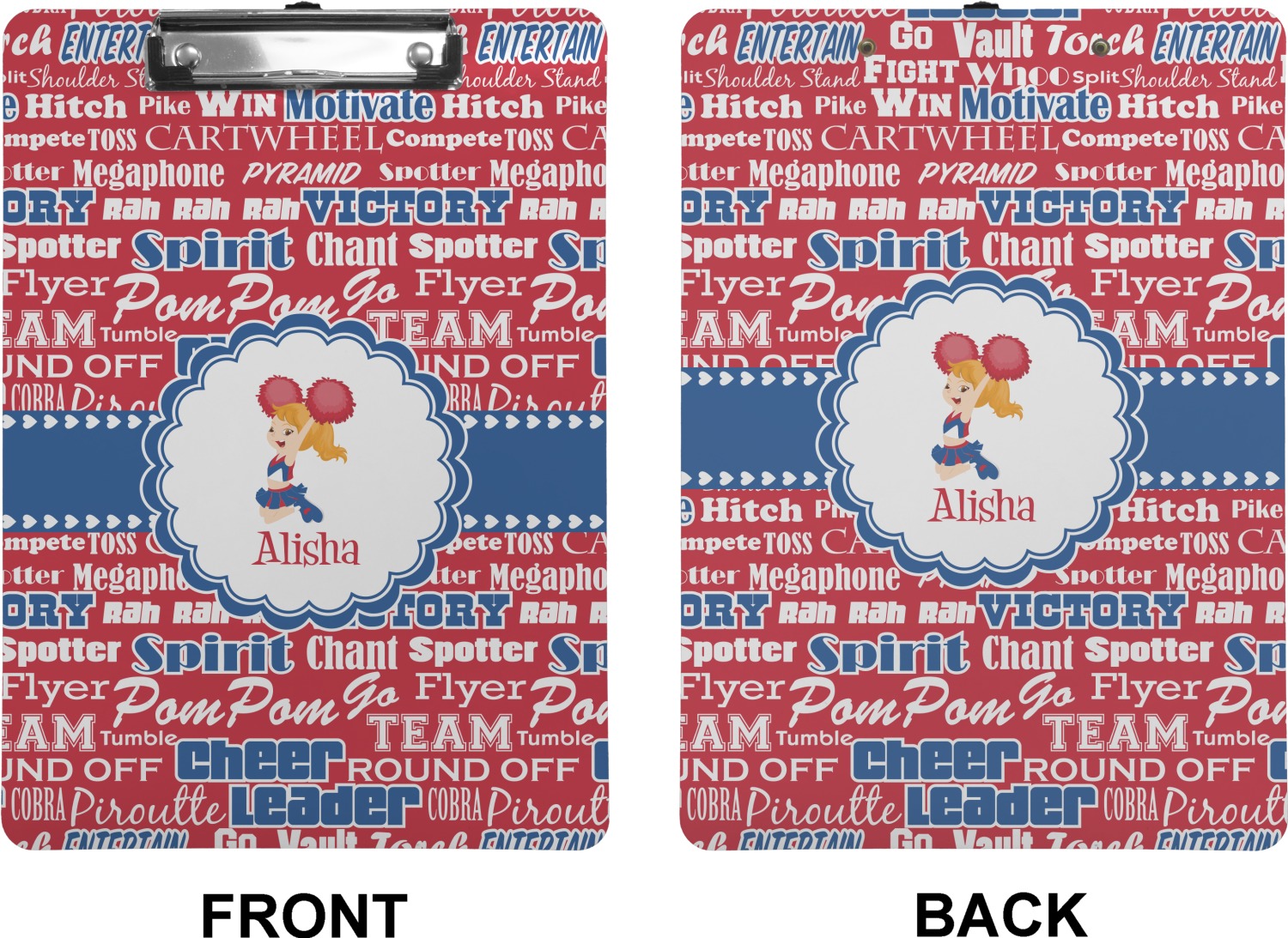 These custom clipboards are made from a strong hardboard and are coated with a glossy finish that accentuates the colors of your design. Alongside a retractable hook at its top, these decorative clipboards also feature sturdy clips to secure several sheets of paper. We sell these clipboards in two separate sizes. Our letter size measures at 12.5" L x 9" W, while our legal clipboard is approximately 15.5" L x 9" W. On both models, your personalization is printed on both sides of this clipboard and can be customized individually.