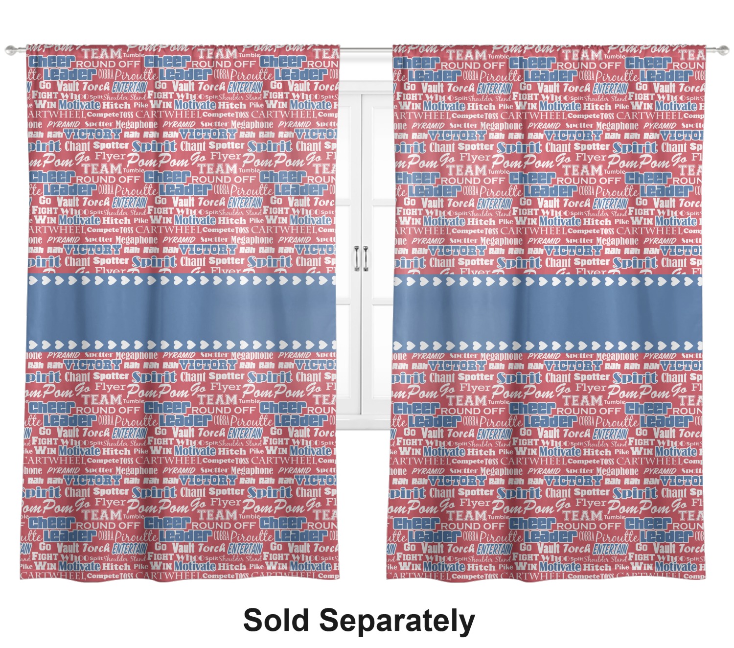 This design is perfect for cheerleaders. The background of the design is a word cloud of cheer words - words such as spirit, victory, team, cheer leader, pom pom and so many more. The background is fully re-color-able - so you can color it with your team's colors. We chose red, blue and white as those are our school's colors!