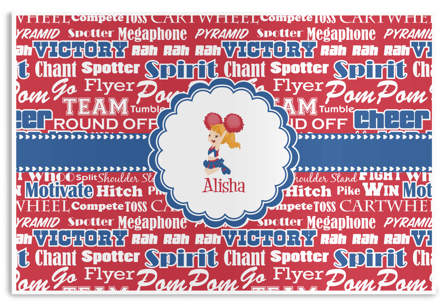 This design is perfect for cheerleaders. The background of the design is a word cloud of cheer words - words such as spirit, victory, team, cheer leader, pom pom and so many more. The background is fully re-color-able - so you can color it with your team's colors. We chose red, blue and white as those are our school's colors!