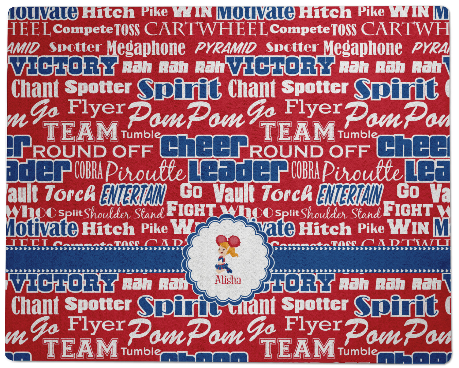 This design is perfect for cheerleaders. The background of the design is a word cloud of cheer words - words such as spirit, victory, team, cheer leader, pom pom and so many more. The background is fully re-color-able - so you can color it with your team's colors. We chose red, blue and white as those are our school's colors!