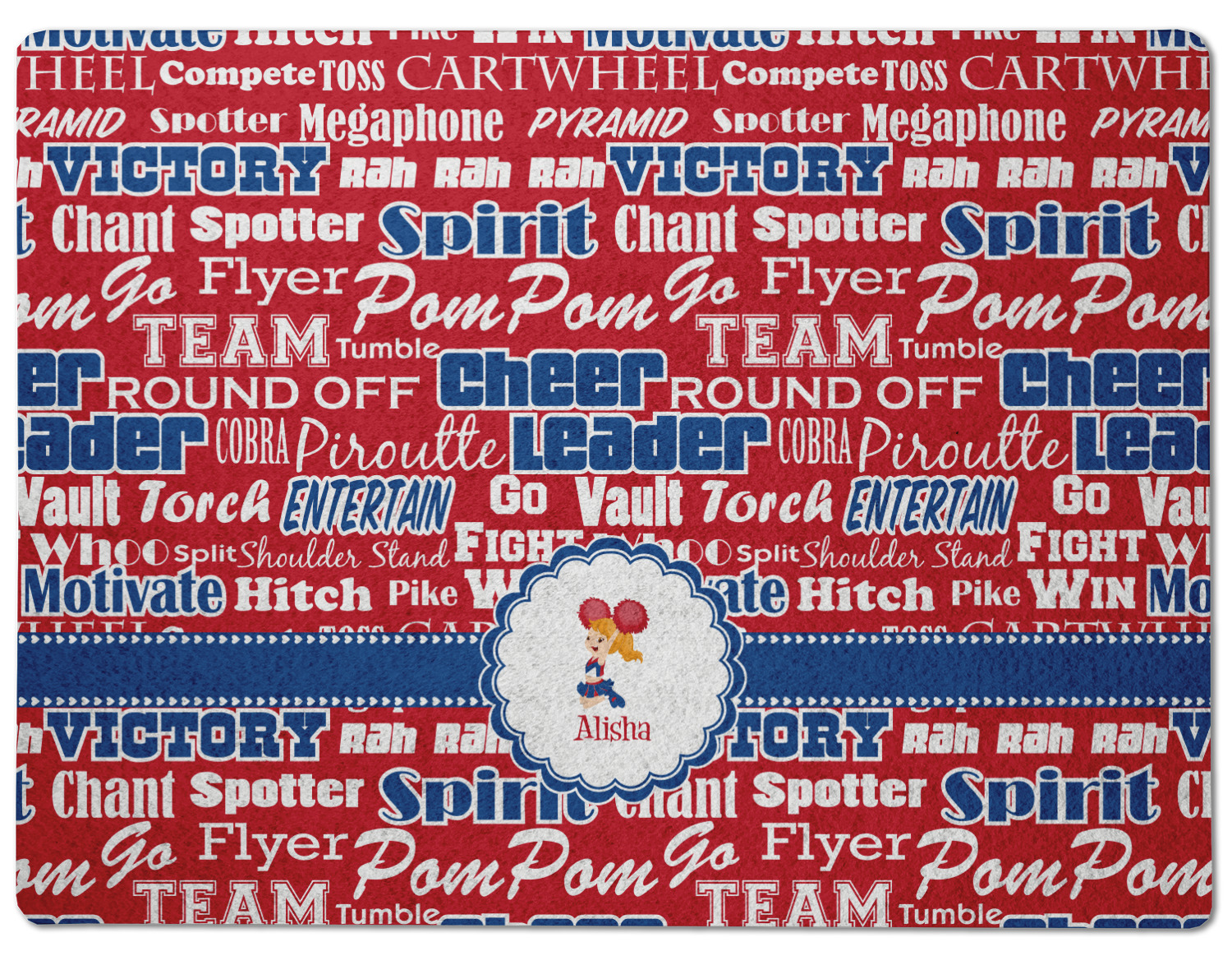 This design is perfect for cheerleaders. The background of the design is a word cloud of cheer words - words such as spirit, victory, team, cheer leader, pom pom and so many more. The background is fully re-color-able - so you can color it with your team's colors. We chose red, blue and white as those are our school's colors!