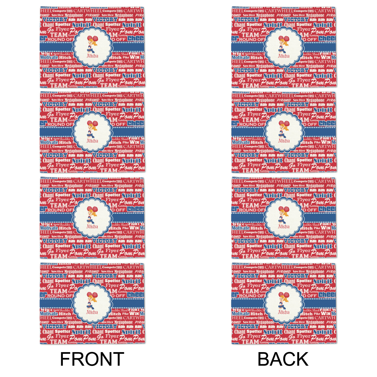This design is perfect for cheerleaders. The background of the design is a word cloud of cheer words - words such as spirit, victory, team, cheer leader, pom pom and so many more. The background is fully re-color-able - so you can color it with your team's colors. We chose red, blue and white as those are our school's colors!