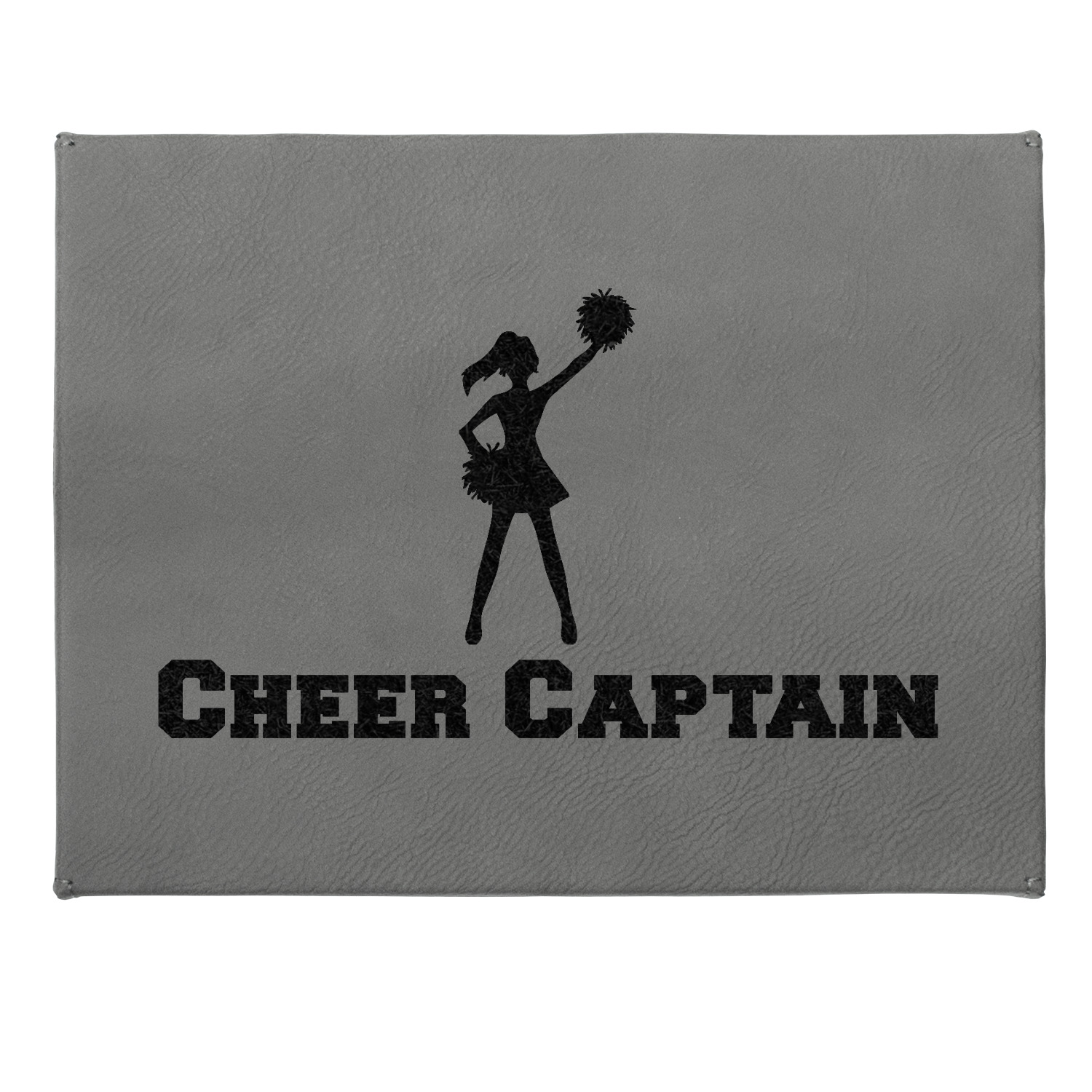 We chose a blue ribbon with hearts, along with a scalloped circle label; and then we chose a cheerleader graphic and with her name below for personalization. The cheerleader's uniform, hair and skin color can also be customized.