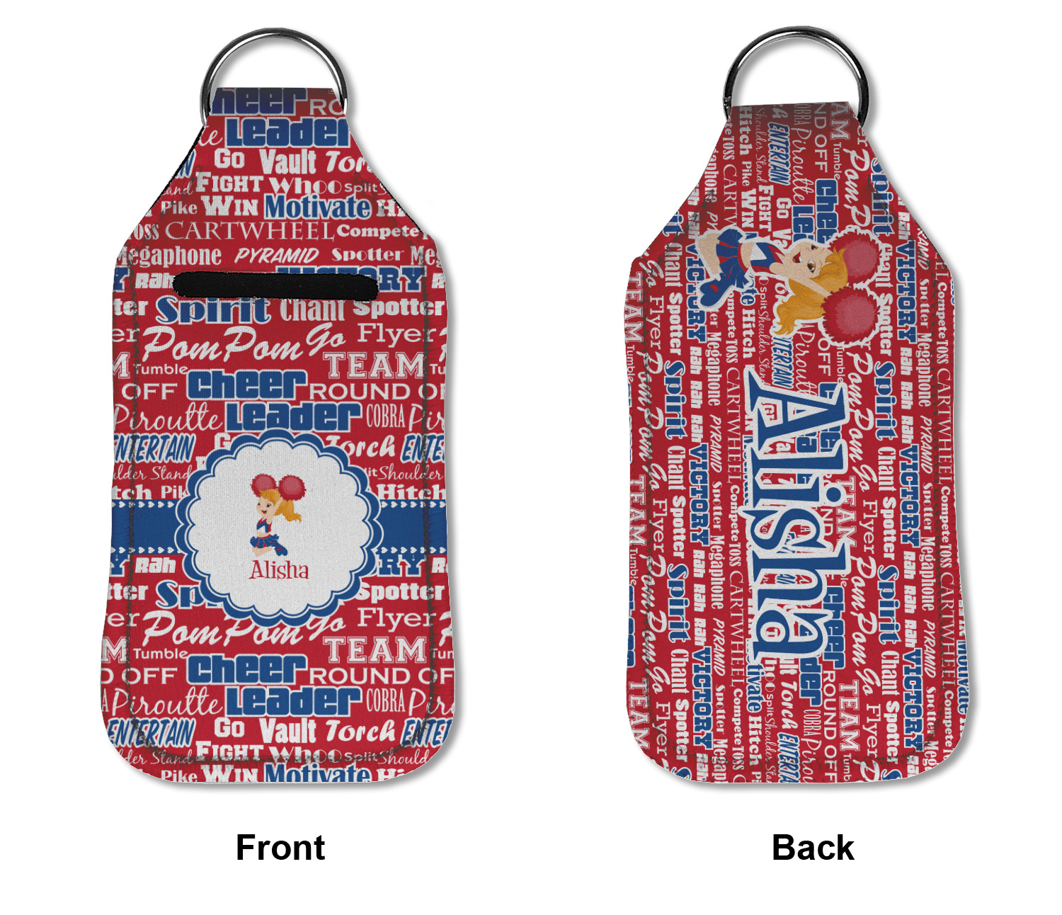 Each hand sanitizer holder comes with its own empty travel-sized, refillable hand sanitizer sure to fit snug in your customized sanitizer case! Our hand sanitizer cases are a durable, yet soft neoprene material sure to last any daily activities or travel agenda. Customize and personalize a hand sanitizer bottle holder with one of our two sizes - small (4.25" x 2.25") or large (5.5" x 2.5"). Each travel sanitizer holder comes with a keyring for attachment on bags, keys, or more!