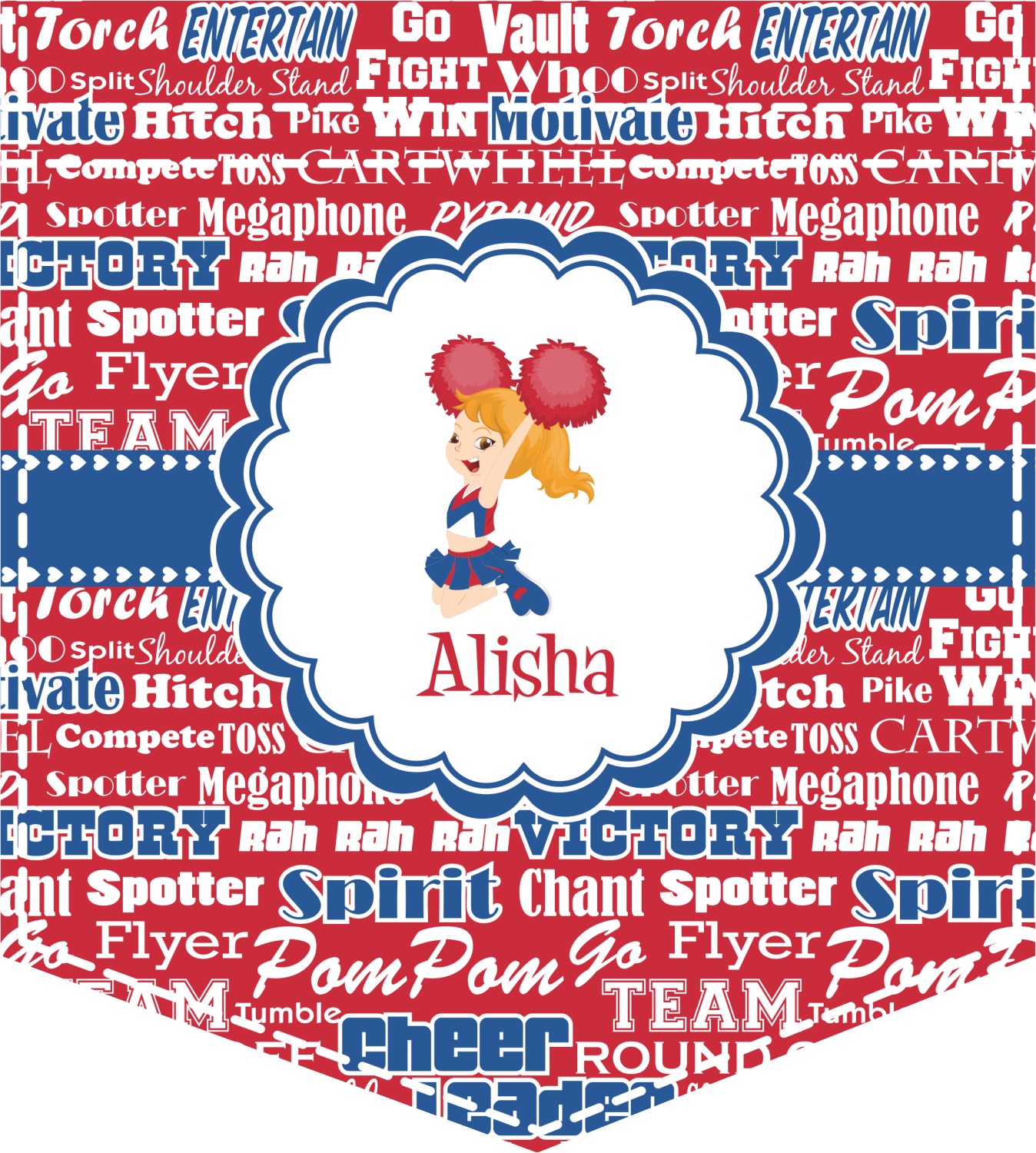 This design is perfect for cheerleaders. The background of the design is a word cloud of cheer words - words such as spirit, victory, team, cheer leader, pom pom and so many more. The background is fully re-color-able - so you can color it with your team's colors. We chose red, blue and white as those are our school's colors!