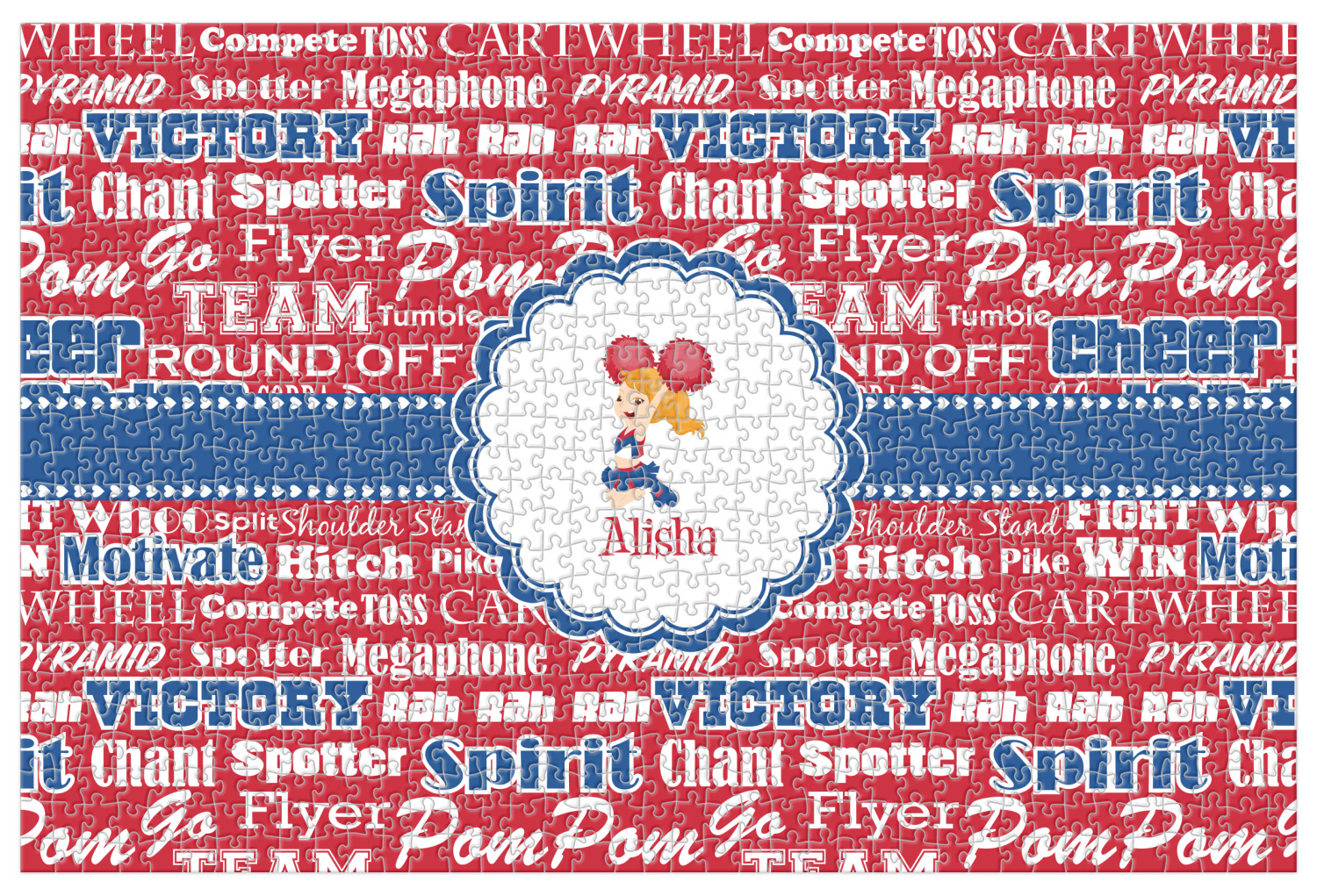 This design is perfect for cheerleaders. The background of the design is a word cloud of cheer words - words such as spirit, victory, team, cheer leader, pom pom and so many more. The background is fully re-color-able - so you can color it with your team's colors. We chose red, blue and white as those are our school's colors!