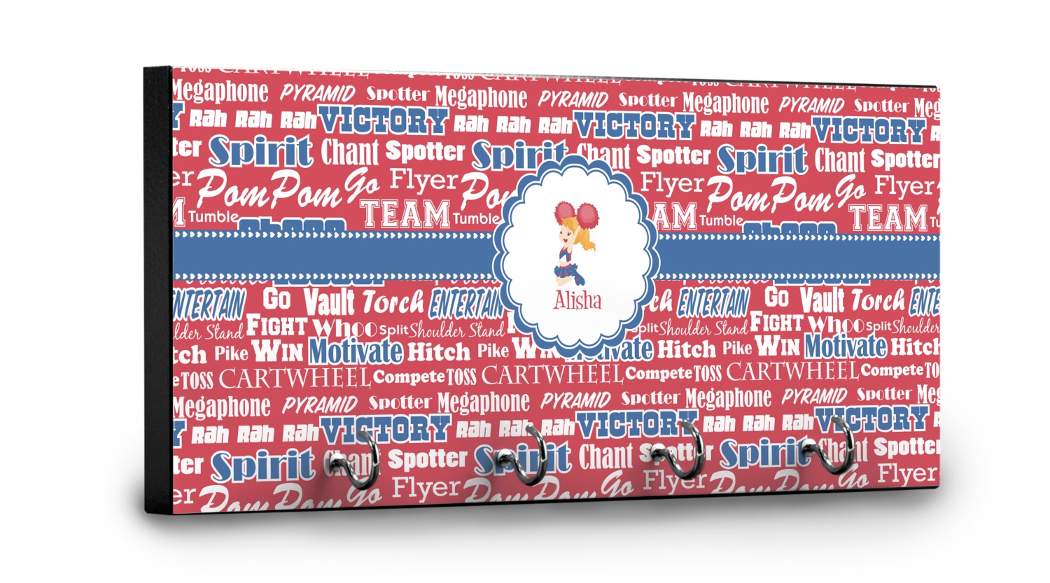This 11" x 5" key hanger is made of sturdy wood and has four metal hooks lining the bottom. This is the perfect size for a family with several drivers. Not only can you hang keys on it though, but pet leashes and other small items. The board is black on the sides and back and is printed with the design of your choice on the front.