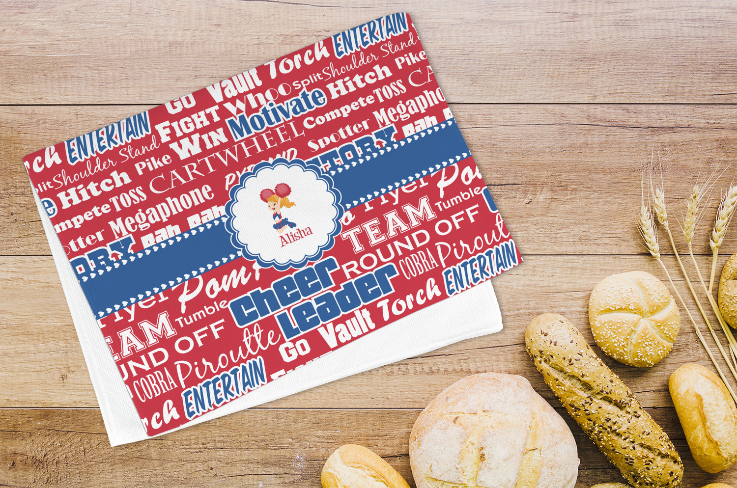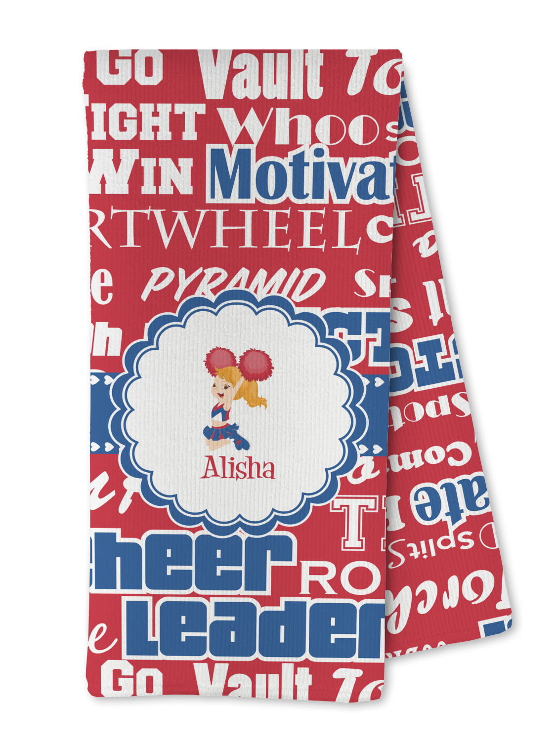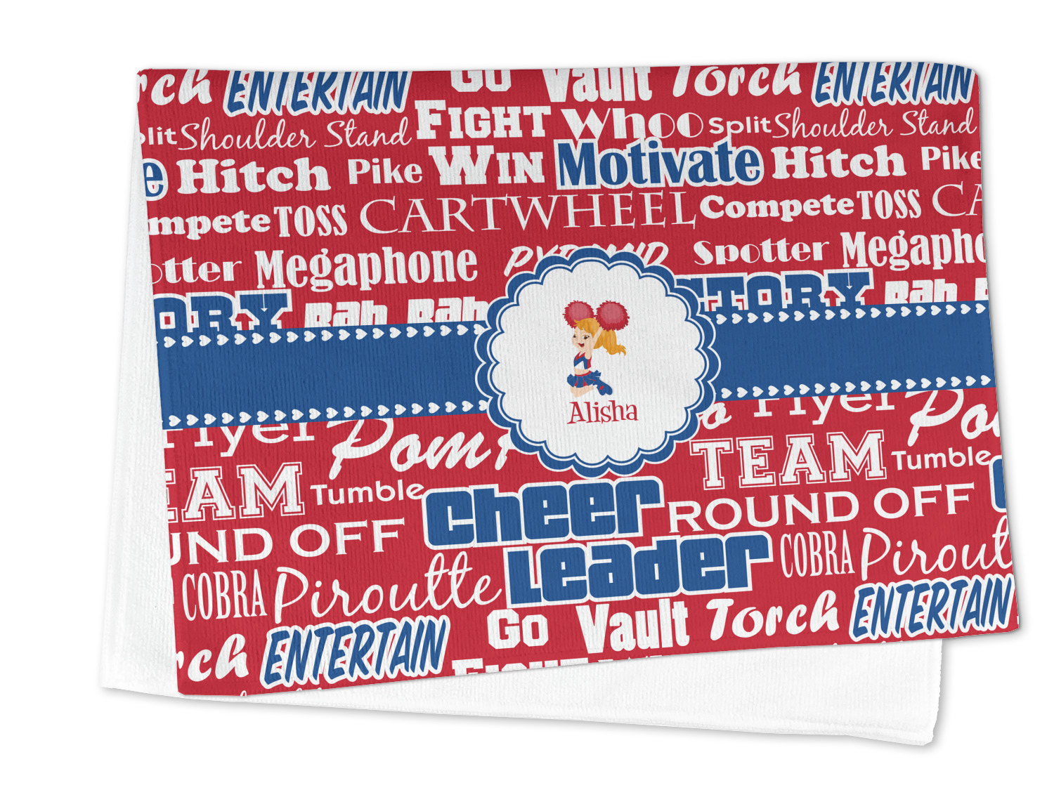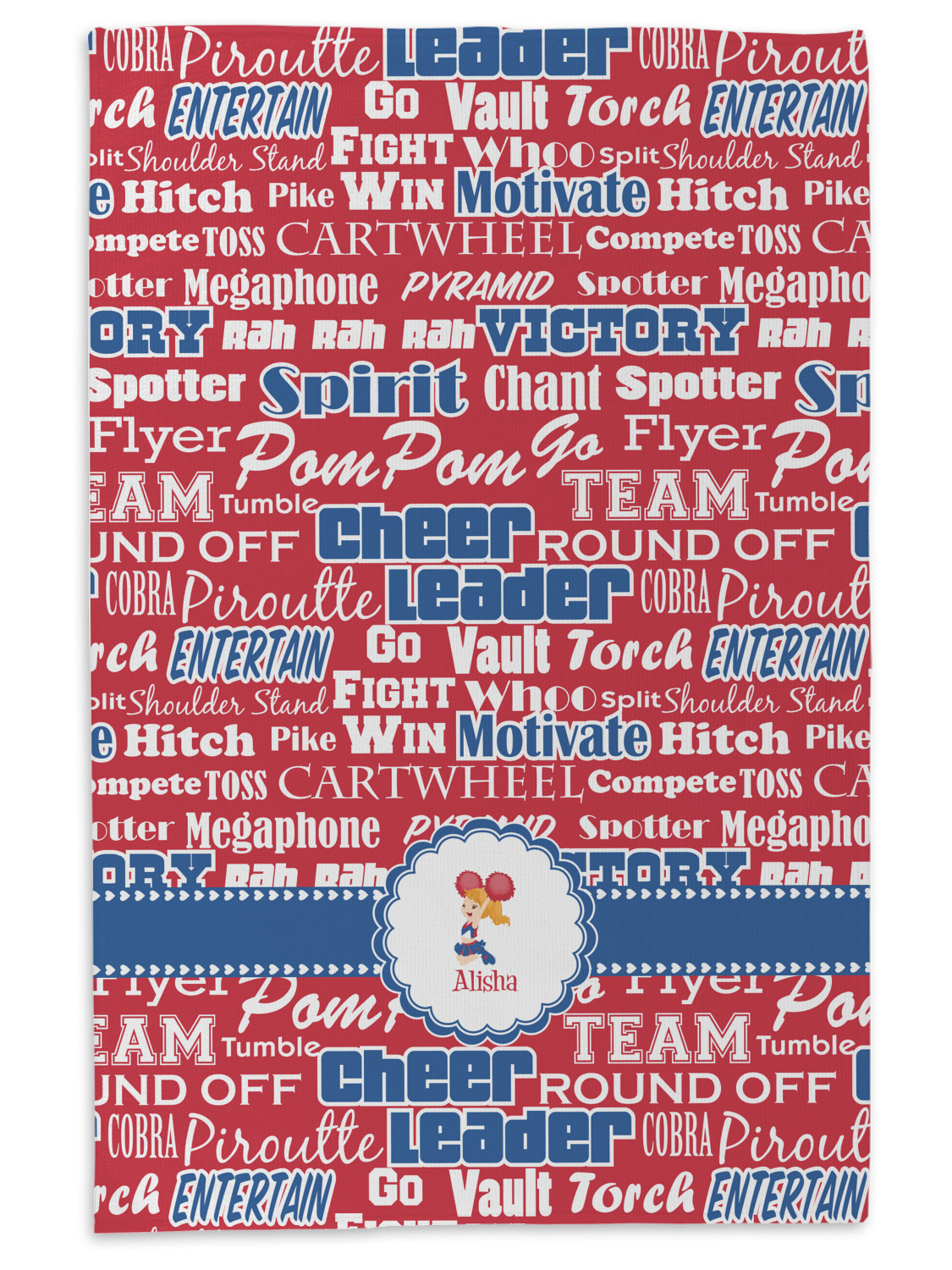 This design is perfect for cheerleaders. The background of the design is a word cloud of cheer words - words such as spirit, victory, team, cheer leader, pom pom and so many more. The background is fully re-color-able - so you can color it with your team's colors. We chose red, blue and white as those are our school's colors!