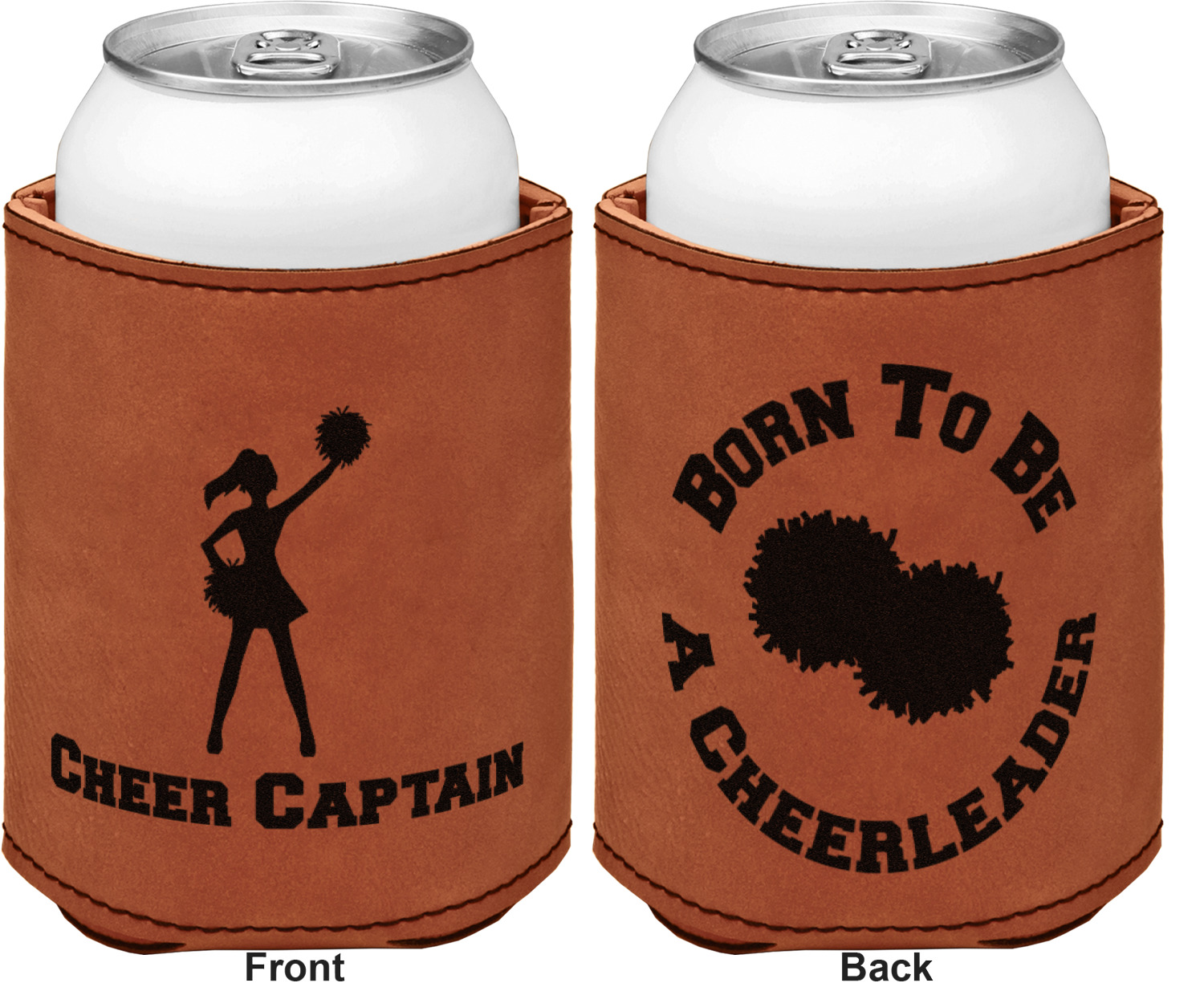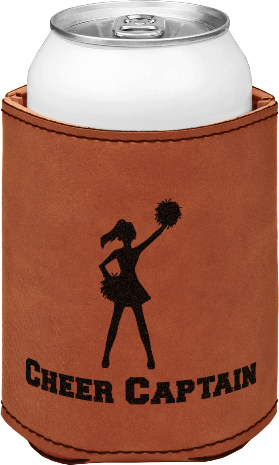 This can sleeve is made from a cognac-brown leatherette and stitched with a sturdy, black thread. A slim padding lines the inside of your can sleeve to allow for a better fit once your drink is inserted. The sleeve itself measures at 4 by 4.5 inches, allowing this custom can sleeve to accommodate most canned drinks. Your personalized design can be engraved on the front and back, or solely the front. When laser-engraved, your design appears as a black coloration which contrasts the leatherette nicely.