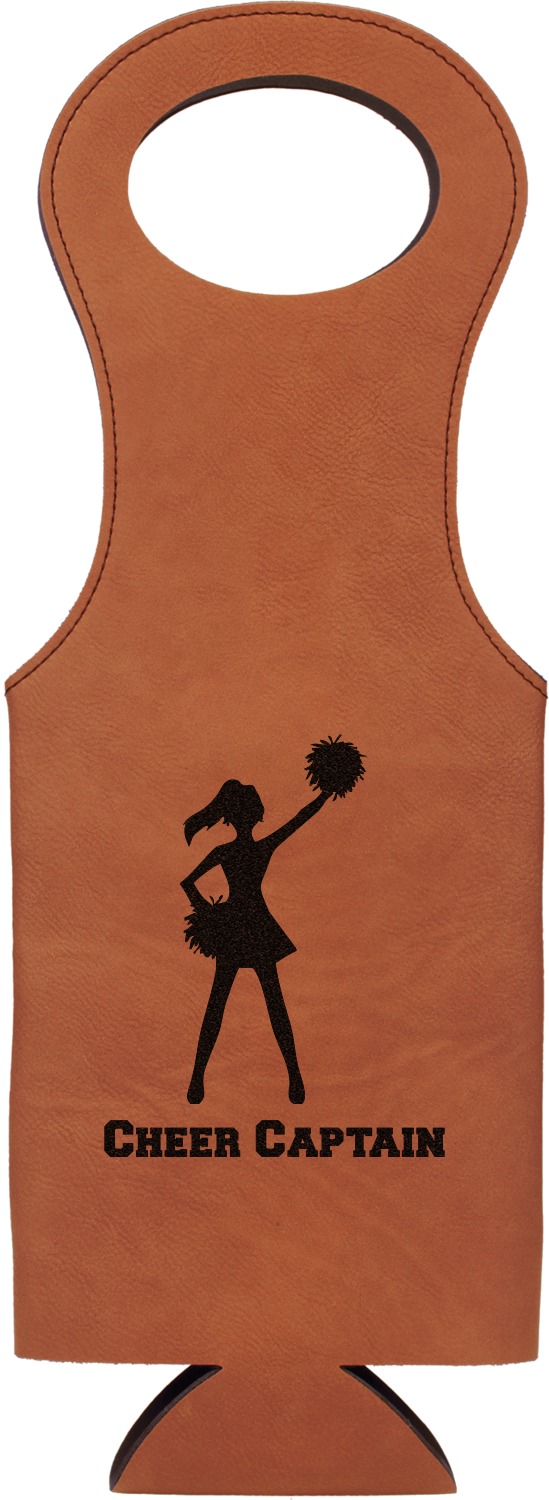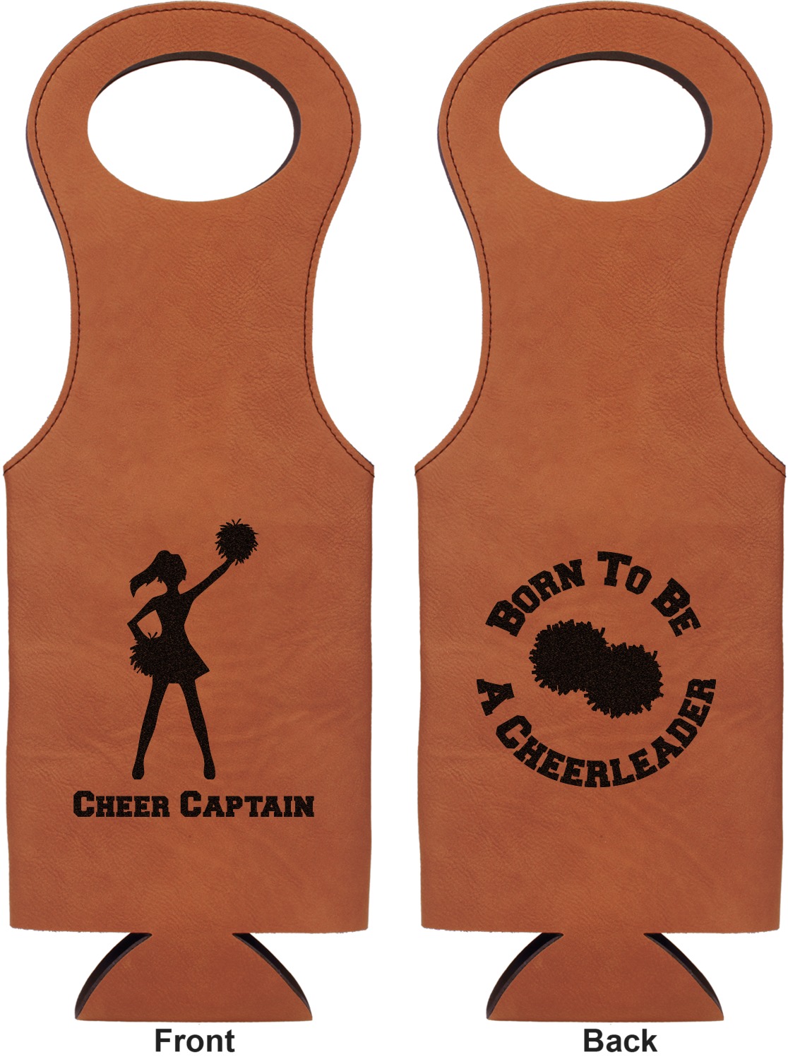 This wine carrier is made from a stunning leatherette, in a cognac-brown color. Strong, black stitching lines the sides of your wine bottle bag and provides extra durability. The interior is lined with a padded, black material to allow for a snug fit once your bottle is placed inside. At the top of this wine gift bag, you'll find two oval shaped handles that elegantly complements the rest of the bag's style. We provide you with the option of laser-engraving the front, or the front and back of your new personalized wine bag!