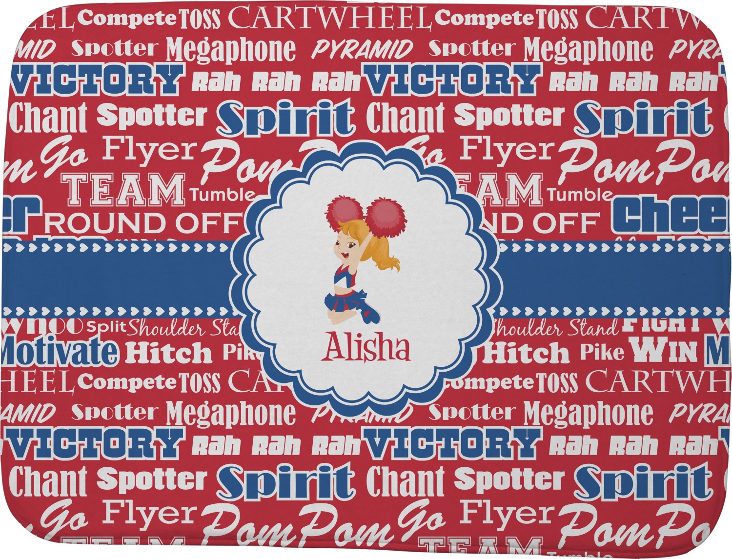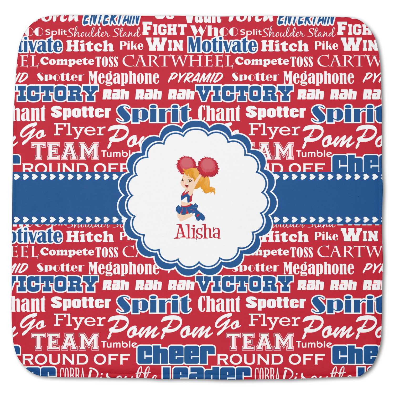 This design is perfect for cheerleaders. The background of the design is a word cloud of cheer words - words such as spirit, victory, team, cheer leader, pom pom and so many more. The background is fully re-color-able - so you can color it with your team's colors. We chose red, blue and white as those are our school's colors!