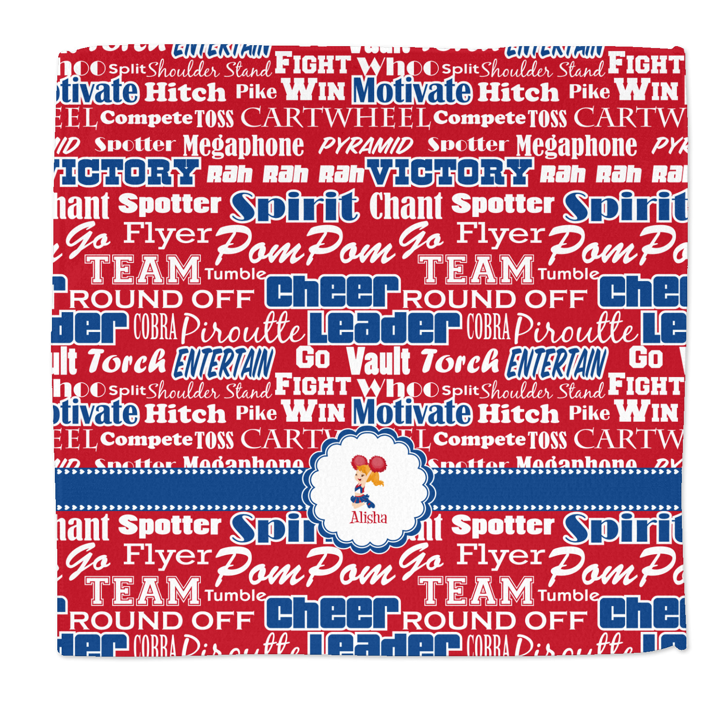 This design is perfect for cheerleaders. The background of the design is a word cloud of cheer words - words such as spirit, victory, team, cheer leader, pom pom and so many more. The background is fully re-color-able - so you can color it with your team's colors. We chose red, blue and white as those are our school's colors!