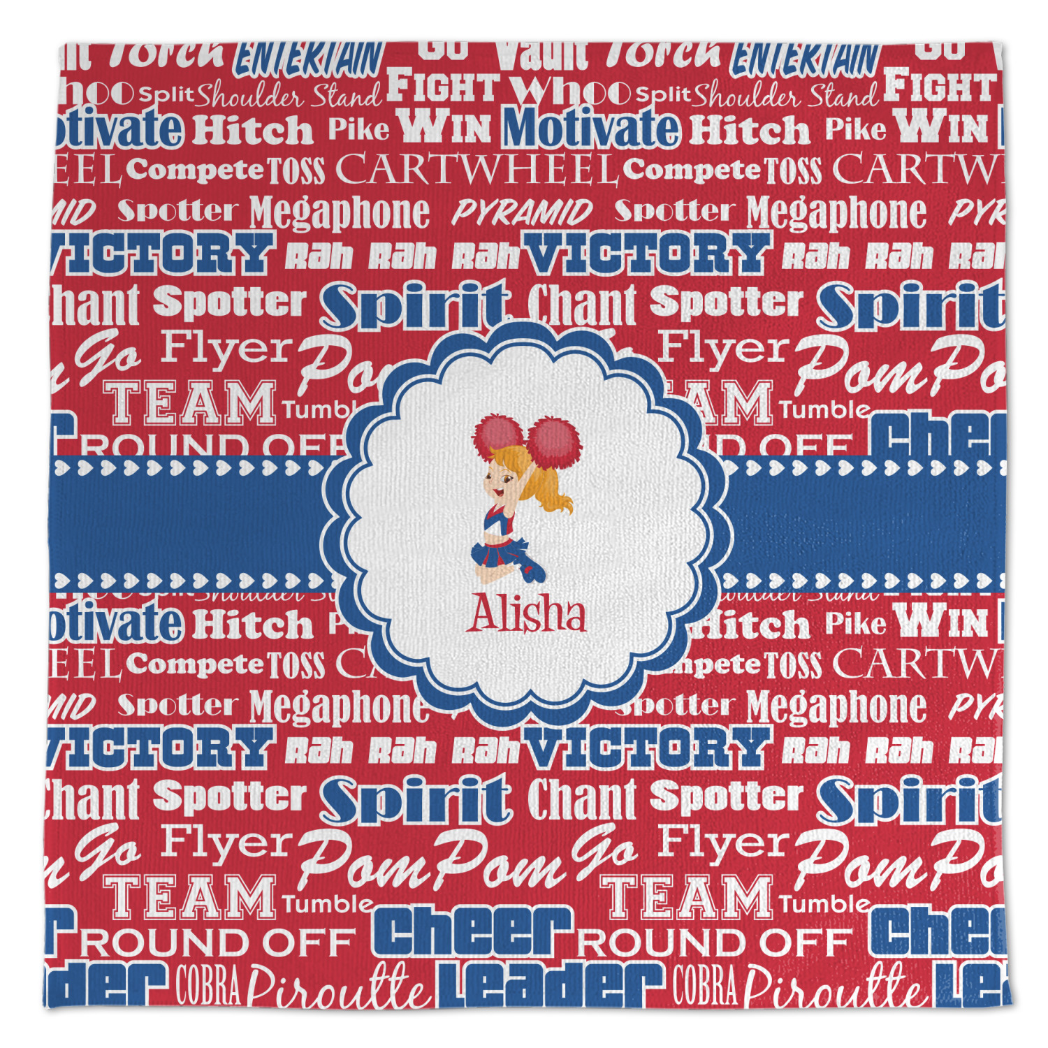 This design is perfect for cheerleaders. The background of the design is a word cloud of cheer words - words such as spirit, victory, team, cheer leader, pom pom and so many more. The background is fully re-color-able - so you can color it with your team's colors. We chose red, blue and white as those are our school's colors!