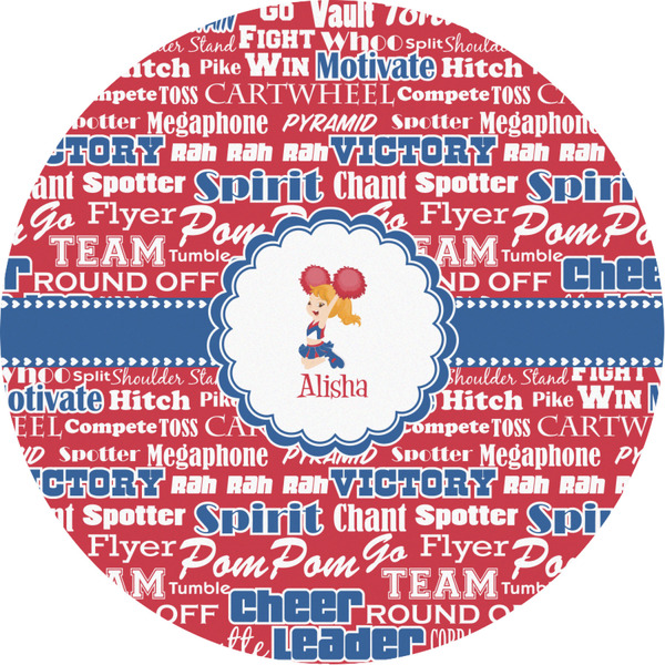 This design is perfect for cheerleaders. The background of the design is a word cloud of cheer words - words such as spirit, victory, team, cheer leader, pom pom and so many more. The background is fully re-color-able - so you can color it with your team's colors. We chose red, blue and white as those are our school's colors!