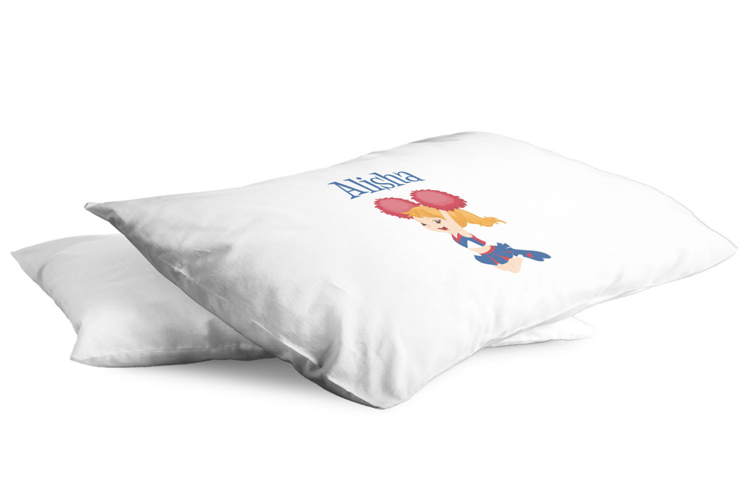We chose a blue ribbon with hearts, along with a scalloped circle label; and then we chose a cheerleader graphic and with her name below for personalization. The cheerleader's uniform, hair and skin color can also be customized.