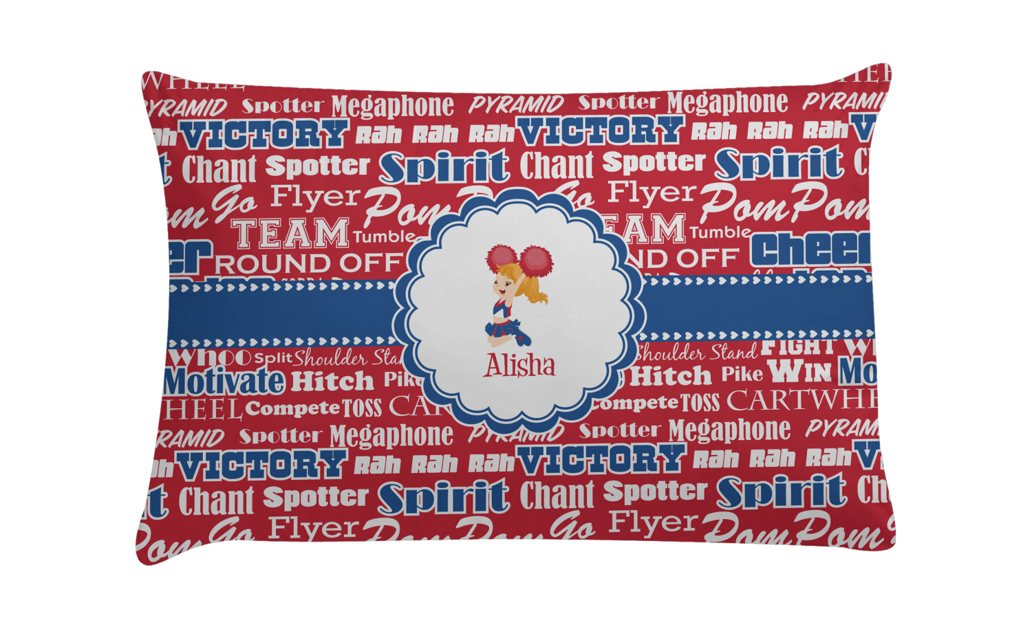 This design is perfect for cheerleaders. The background of the design is a word cloud of cheer words - words such as spirit, victory, team, cheer leader, pom pom and so many more. The background is fully re-color-able - so you can color it with your team's colors. We chose red, blue and white as those are our school's colors!