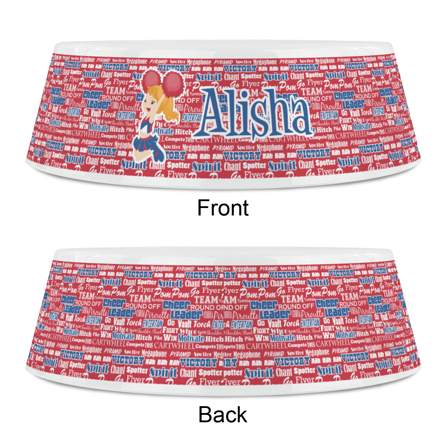 This design is perfect for cheerleaders. The background of the design is a word cloud of cheer words - words such as spirit, victory, team, cheer leader, pom pom and so many more. The background is fully re-color-able - so you can color it with your team's colors. We chose red, blue and white as those are our school's colors!