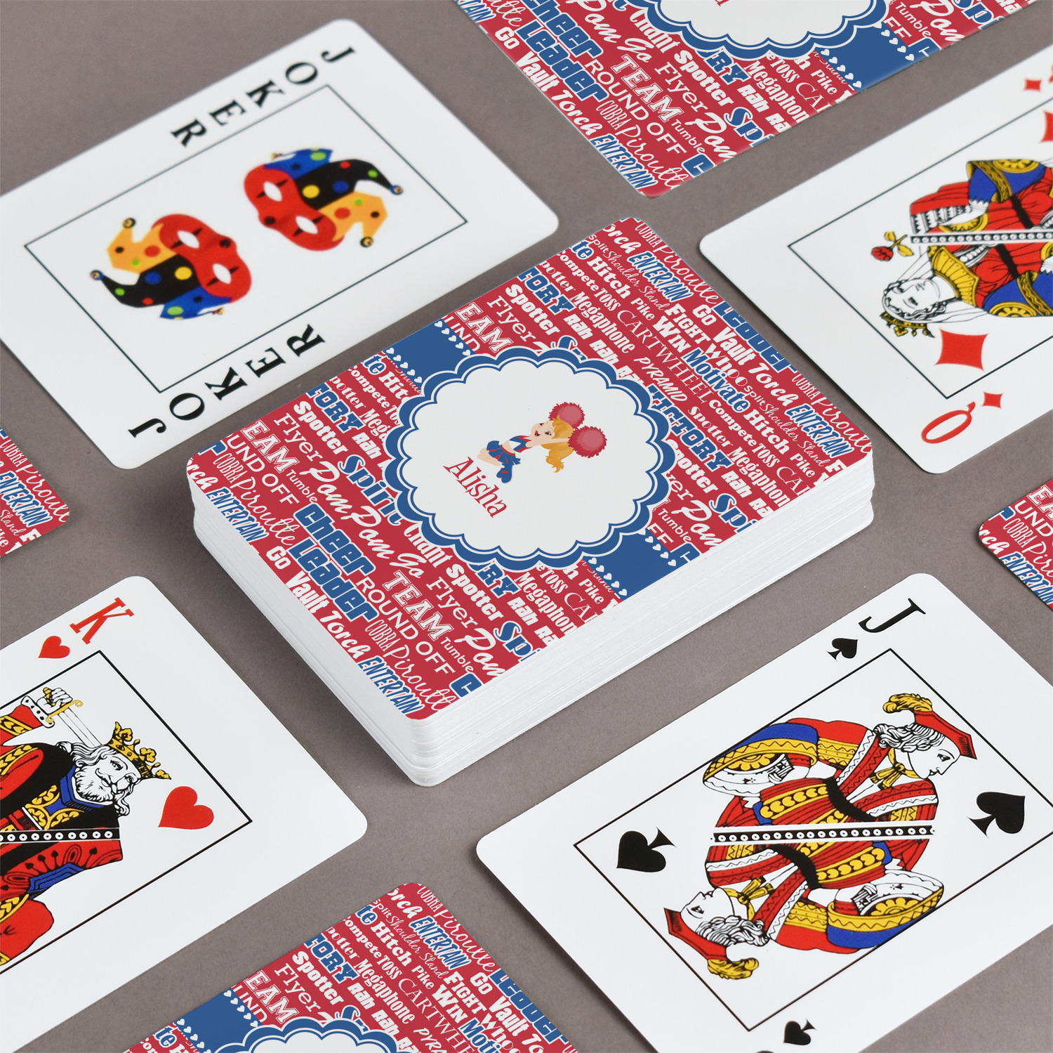 Here at YouCustomizeIt, you can customize your playing cards by uploading your own design, photo, or logo. We have design templates that you can customize by changing the patterns, colors, graphics, personalization styles, etc. - using our free for you to use in our design elements library.