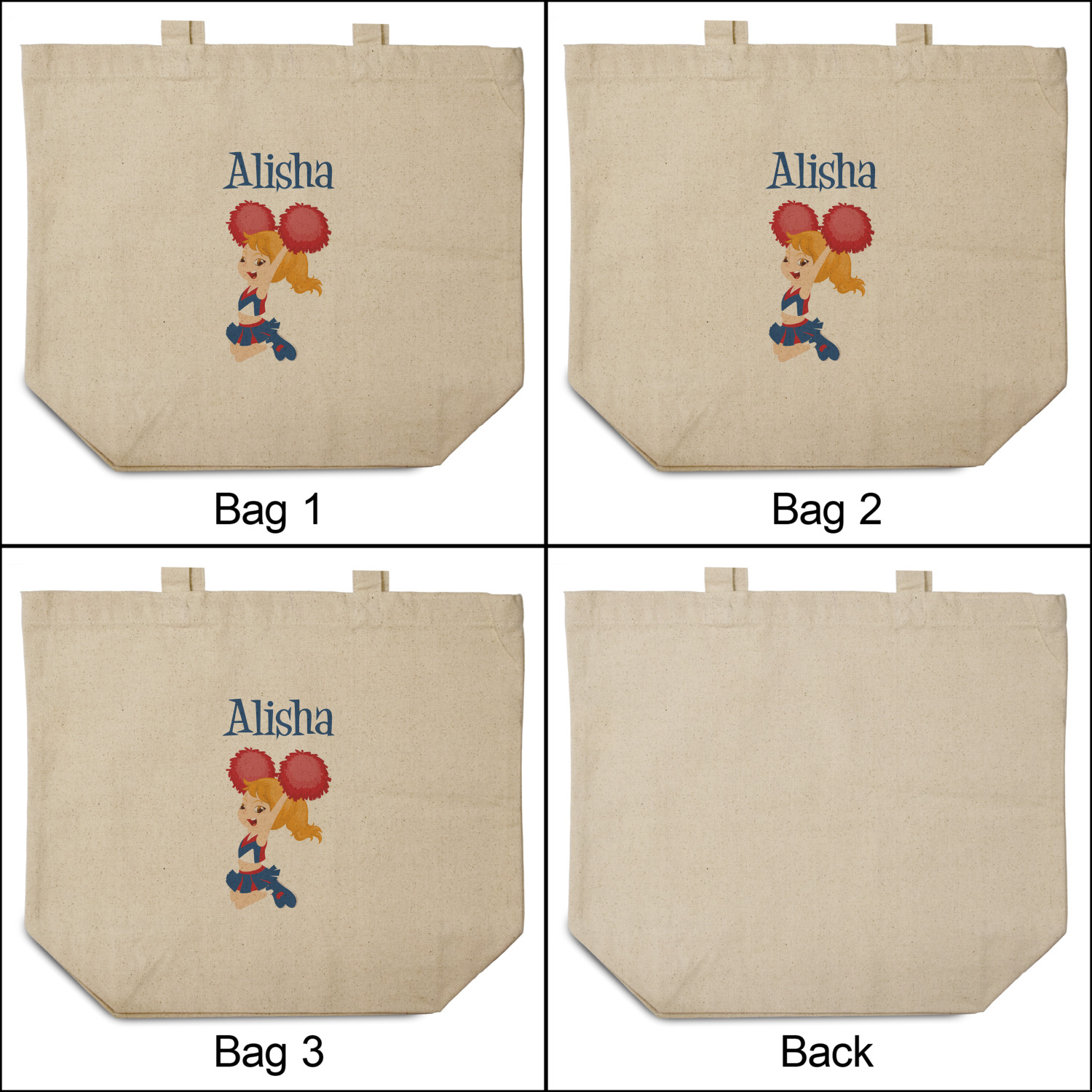 These cotton totes are washable and easy to care for, and they can be folded flat for storage. Your artwork, logo, or photo is printed in full color directly on the cotton tote in the front.