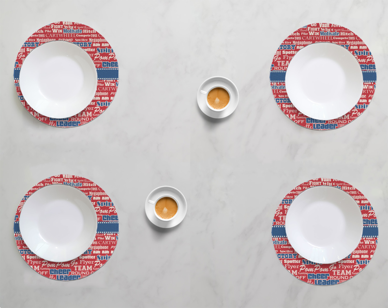 This design is perfect for cheerleaders. The background of the design is a word cloud of cheer words - words such as spirit, victory, team, cheer leader, pom pom and so many more. The background is fully re-color-able - so you can color it with your team's colors. We chose red, blue and white as those are our school's colors!