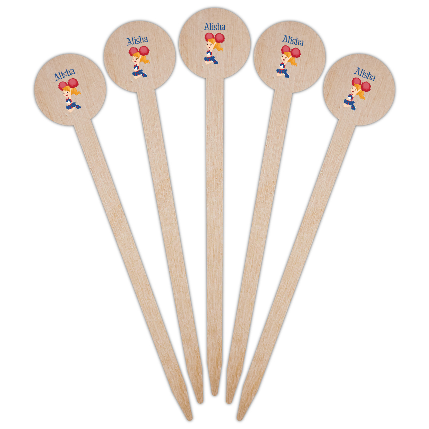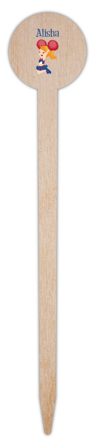 We chose a blue ribbon with hearts, along with a scalloped circle label; and then we chose a cheerleader graphic and with her name below for personalization. The cheerleader's uniform, hair and skin color can also be customized.