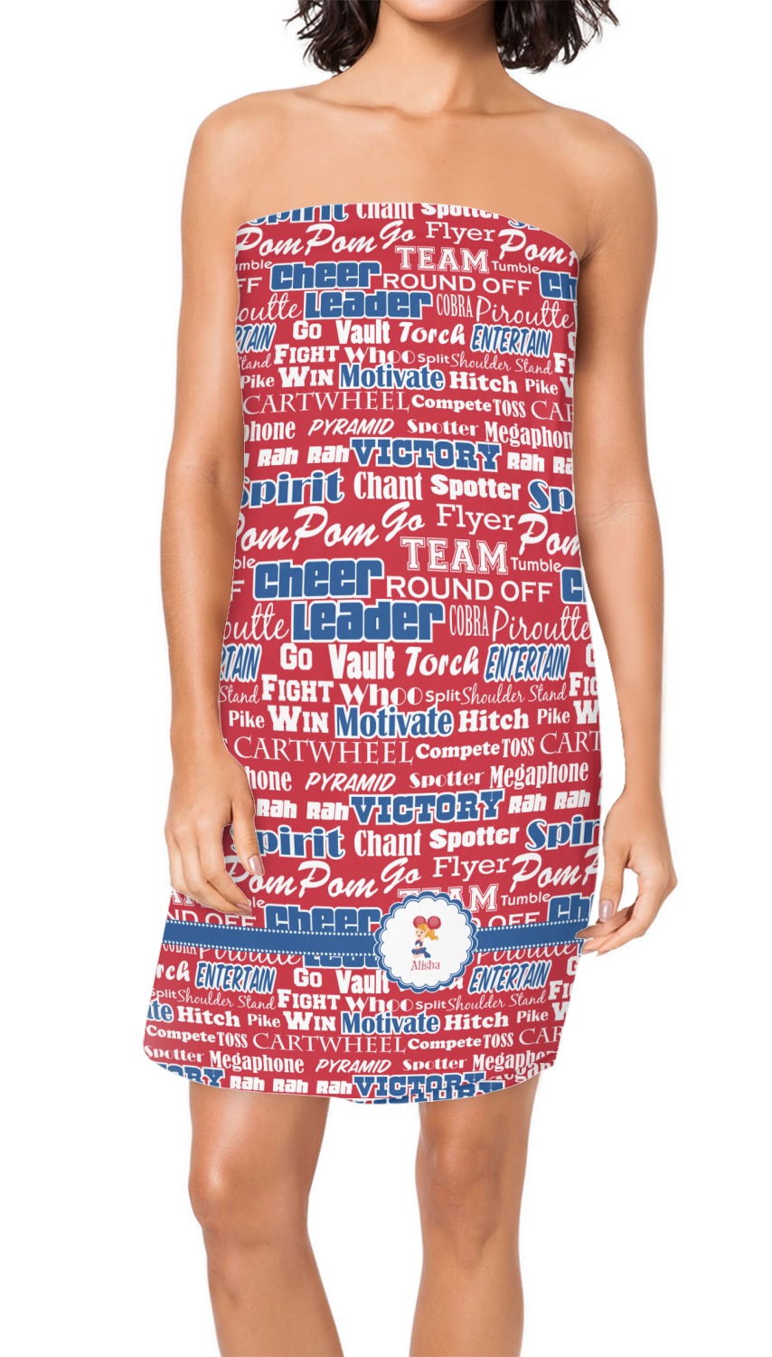 Made from a plush, fleece fabric, these luxurious towel wraps are comfortable and absorbent. They are printed, cut, and sewn for you, right here in the USA, after you place your order. These personalized bath wraps measure at approximately 59 by 32 inches, and display your customization across the outside.