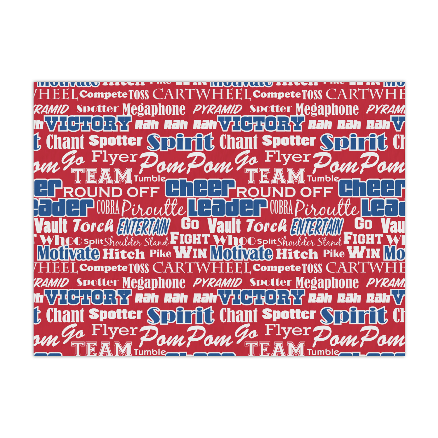 This design is perfect for cheerleaders. The background of the design is a word cloud of cheer words - words such as spirit, victory, team, cheer leader, pom pom and so many more. The background is fully re-color-able - so you can color it with your team's colors. We chose red, blue and white as those are our school's colors!