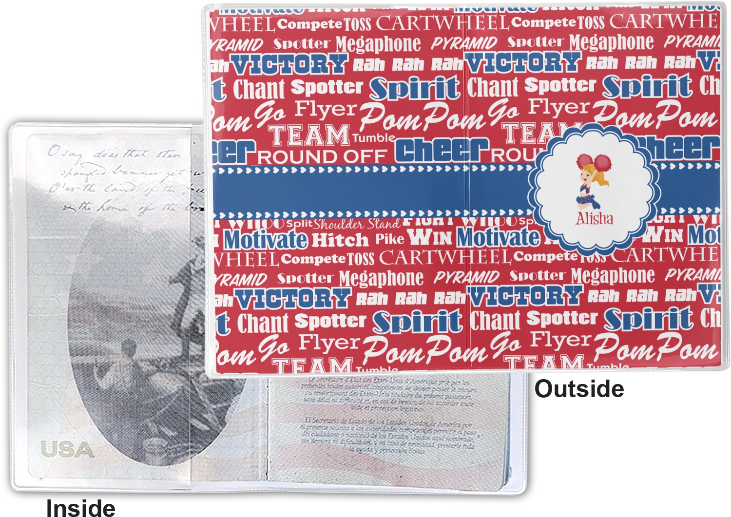 This cover is made of a sturdy clear vinyl with a personalized vinyl insert inside. There is a large and a small pocket on either side to hold the covers of your passport easily and firmly. The passport holder is approximately 7.5" x 5.25", the perfect size to snugly fit your passport. This slim cover is the perfect way to protect your passport without being one more bulky item you have to carry.