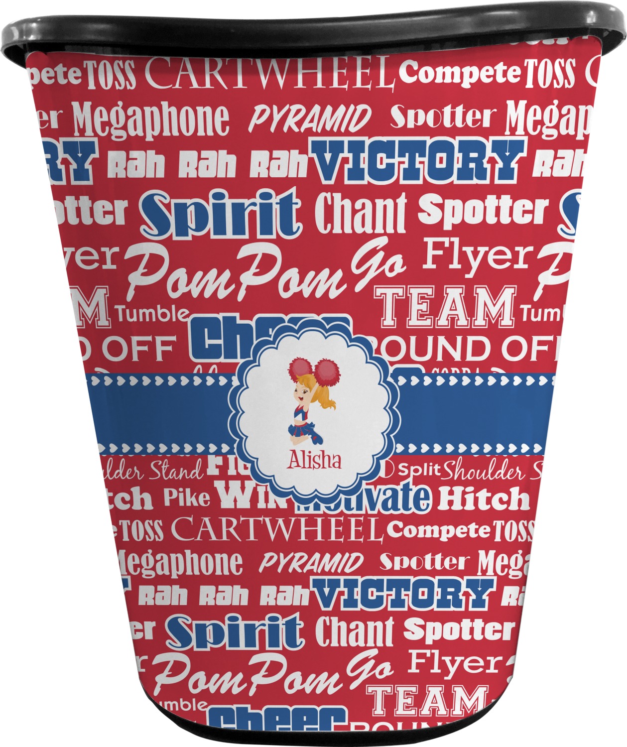 You can choose to purchase these decorative wastebaskets in either a white or a black color that will show on the base and the upper rim. Your customization is printed on a high-gloss, fine-quality vinyl adhesive, and you can choose to either have this adhesive applied to one side only or to both sides. As such, this plastic wastebasket can be single-sided or double-sided, depending on your creative vision. Your customization is printed using durable inks, making the design waterproof and resistant to fading over time.