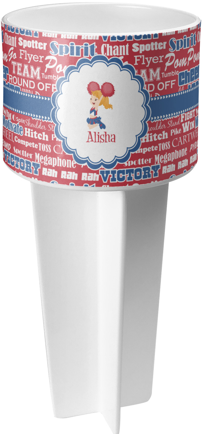 This cup holder has a large stake at its bottom that anchors it to the sand or ground below, while the cup holder rests above the stake. The entire drink holder is made of durable plastic and displays your customization around the cup holder portion. We sell these personalized beach spikers in two different colors: black and white.