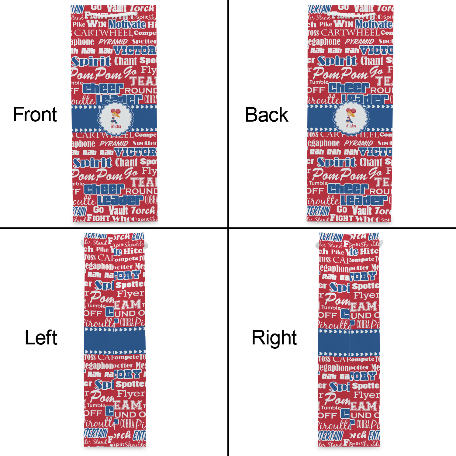 This design is perfect for cheerleaders. The background of the design is a word cloud of cheer words - words such as spirit, victory, team, cheer leader, pom pom and so many more. The background is fully re-color-able - so you can color it with your team's colors. We chose red, blue and white as those are our school's colors!