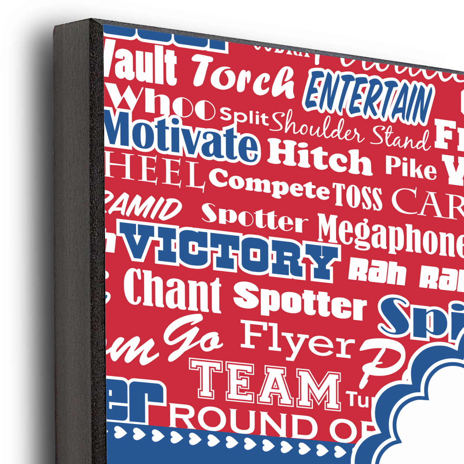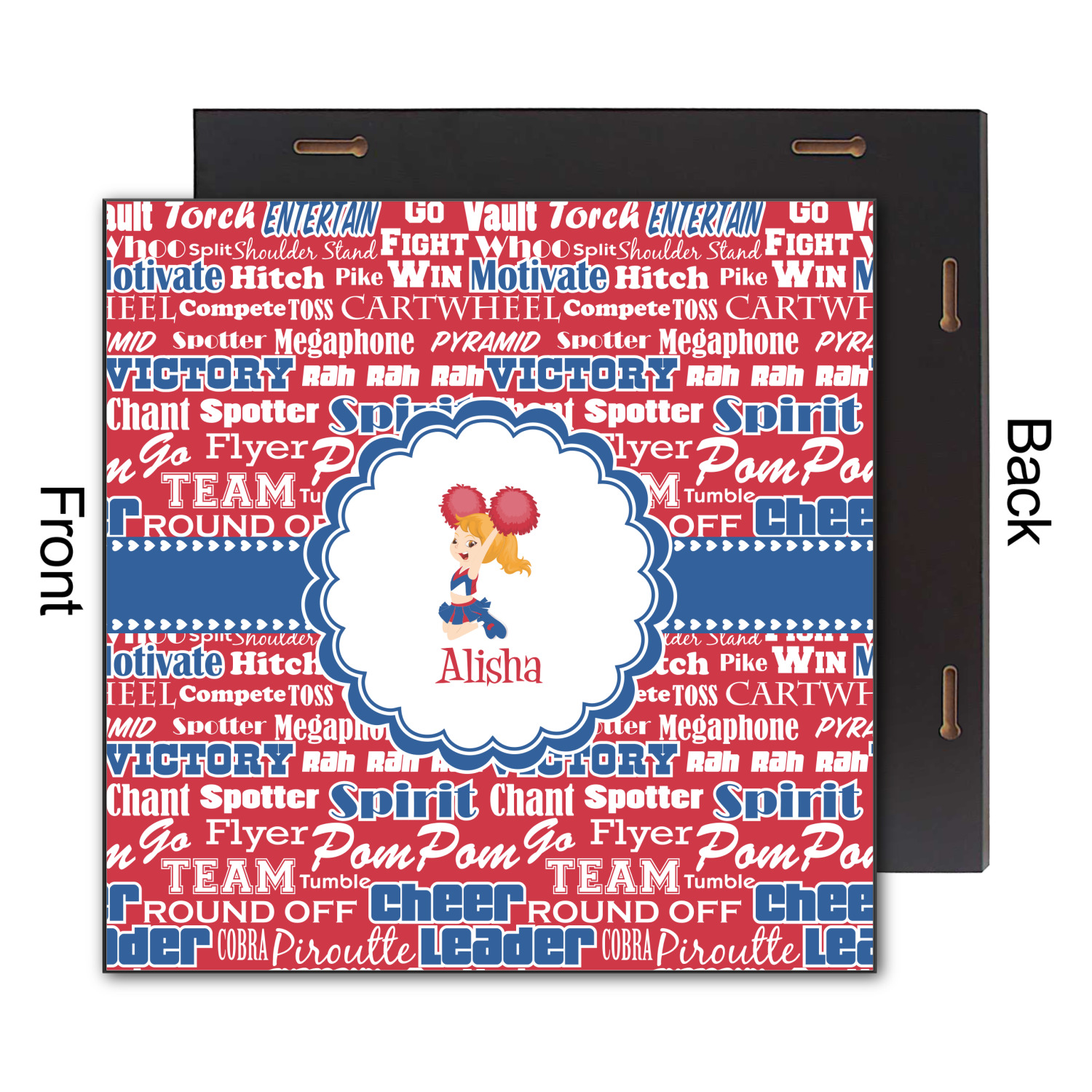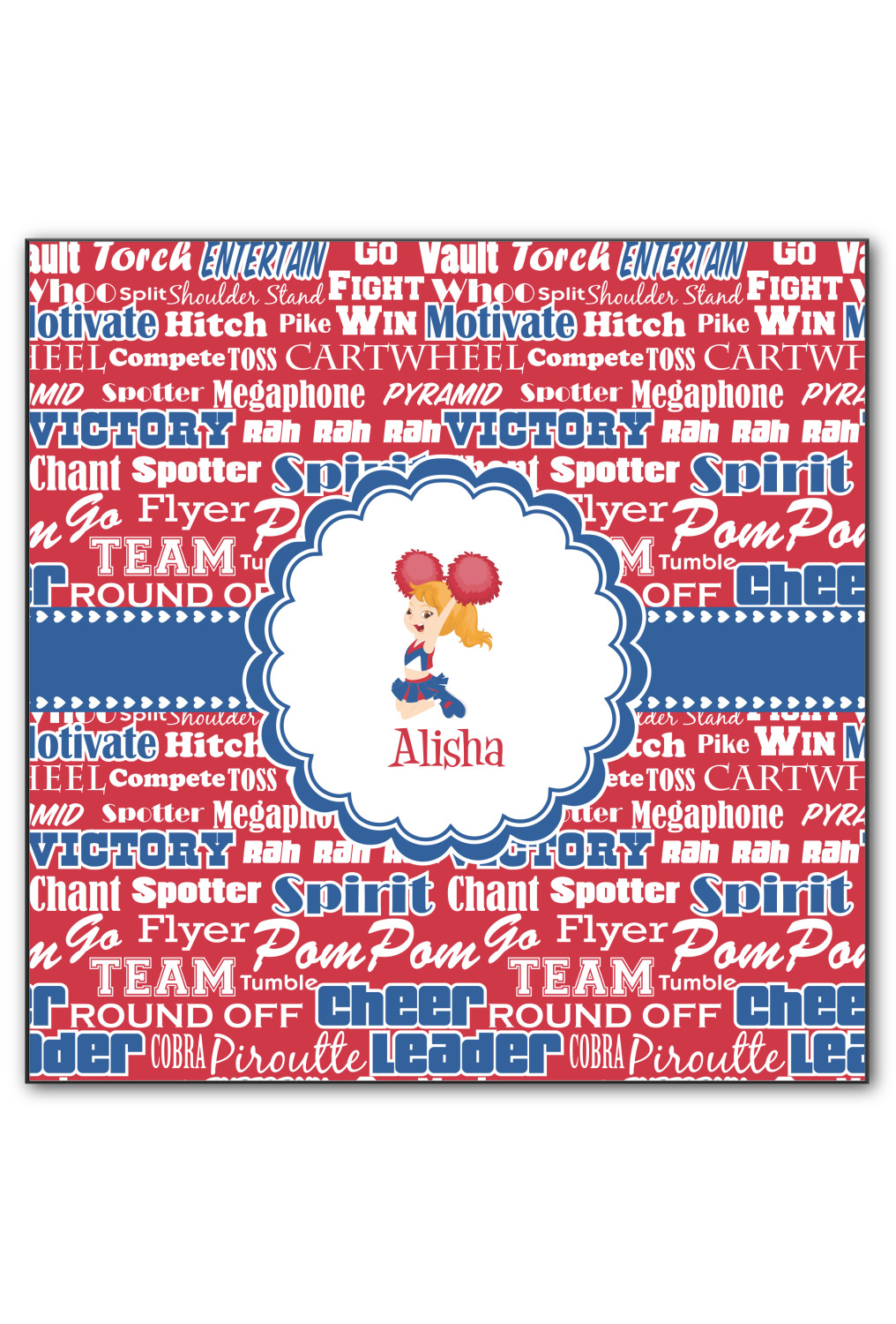 This design is perfect for cheerleaders. The background of the design is a word cloud of cheer words - words such as spirit, victory, team, cheer leader, pom pom and so many more. The background is fully re-color-able - so you can color it with your team's colors. We chose red, blue and white as those are our school's colors!