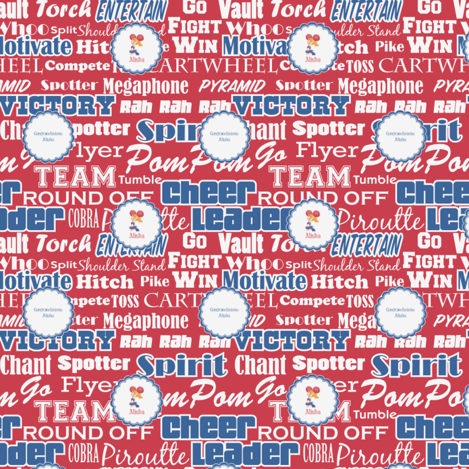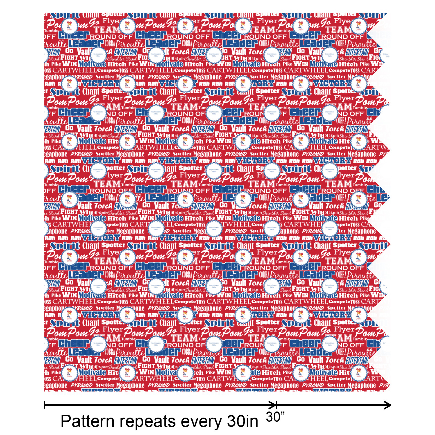 This design is perfect for cheerleaders. The background of the design is a word cloud of cheer words - words such as spirit, victory, team, cheer leader, pom pom and so many more. The background is fully re-color-able - so you can color it with your team's colors. We chose red, blue and white as those are our school's colors!
