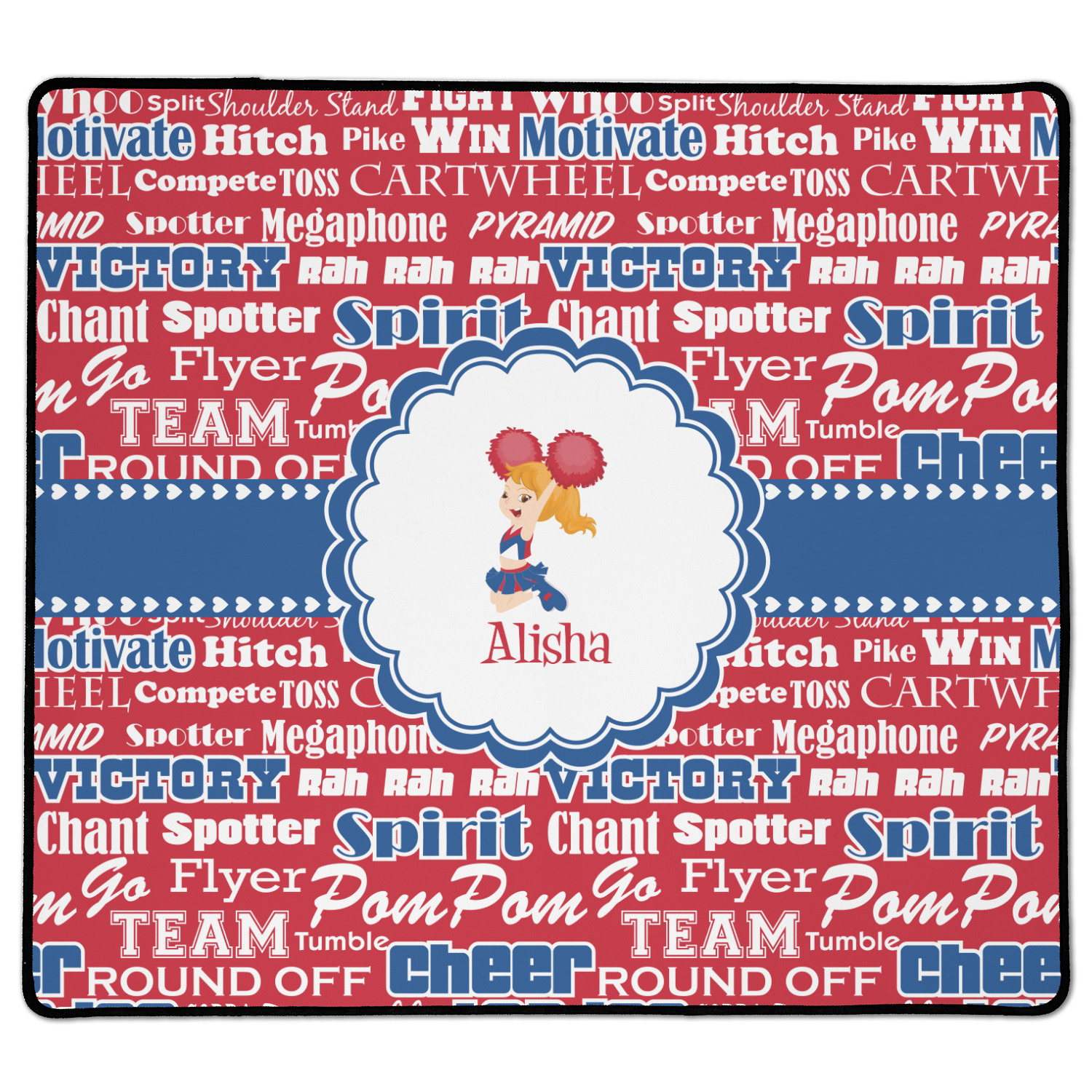 This design is perfect for cheerleaders. The background of the design is a word cloud of cheer words - words such as spirit, victory, team, cheer leader, pom pom and so many more. The background is fully re-color-able - so you can color it with your team's colors. We chose red, blue and white as those are our school's colors!
