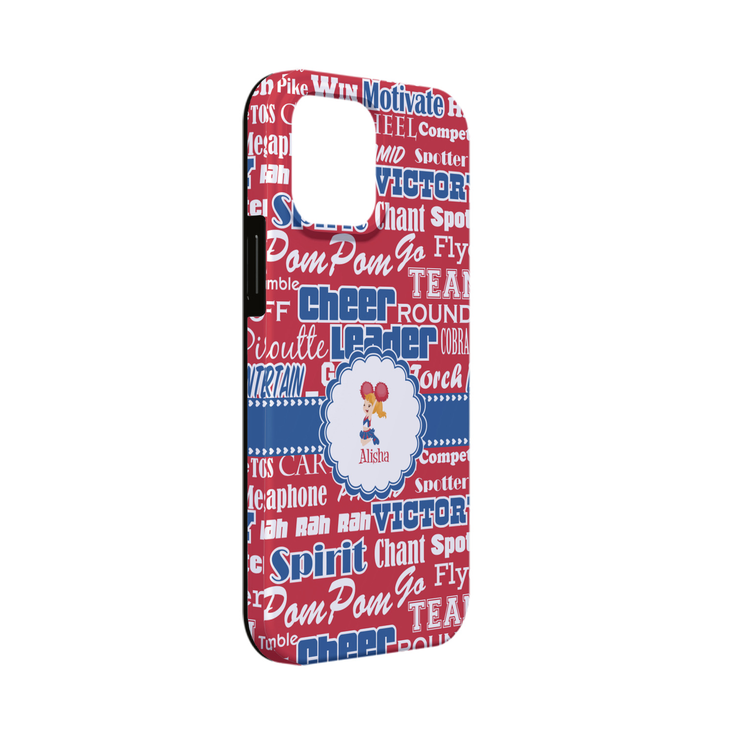 This design is perfect for cheerleaders. The background of the design is a word cloud of cheer words - words such as spirit, victory, team, cheer leader, pom pom and so many more. The background is fully re-color-able - so you can color it with your team's colors. We chose red, blue and white as those are our school's colors!