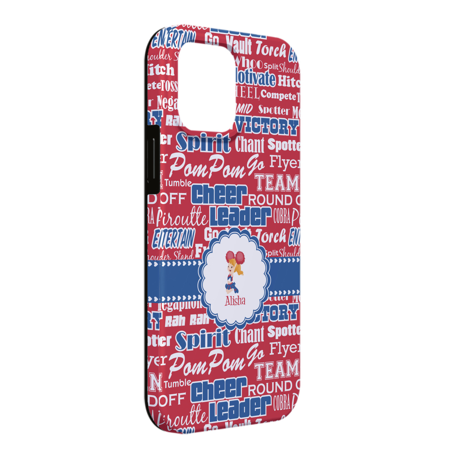 This design is perfect for cheerleaders. The background of the design is a word cloud of cheer words - words such as spirit, victory, team, cheer leader, pom pom and so many more. The background is fully re-color-able - so you can color it with your team's colors. We chose red, blue and white as those are our school's colors!