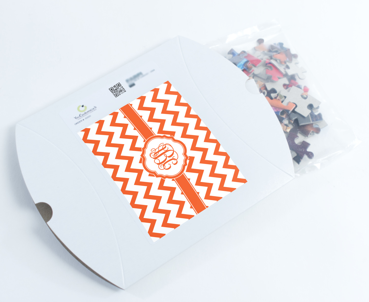 You can also upload your logo or art that you or your kids drew. To create more challenging jigsaw puzzles, you can create a pattern from with your logo or artwork. You can also add other elements such as text or personalization.