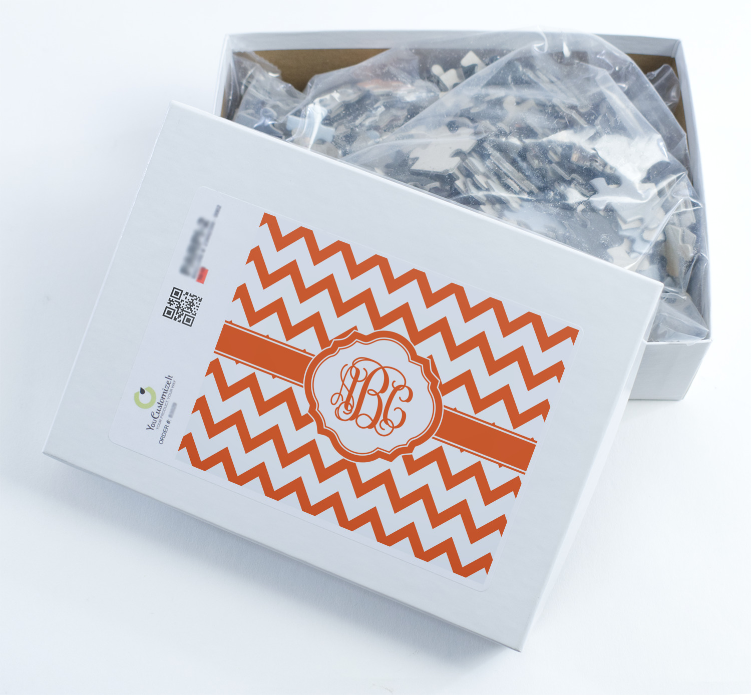 We print our puzzles on thick white chipboard in vibrant colors, then laminate the chipboard and die cut your puzzle. Your jigsaw puzzle is shipped to you in a box with the image of the puzzle on the box.