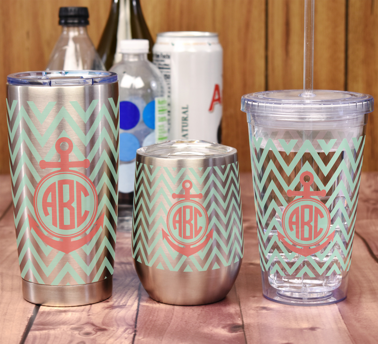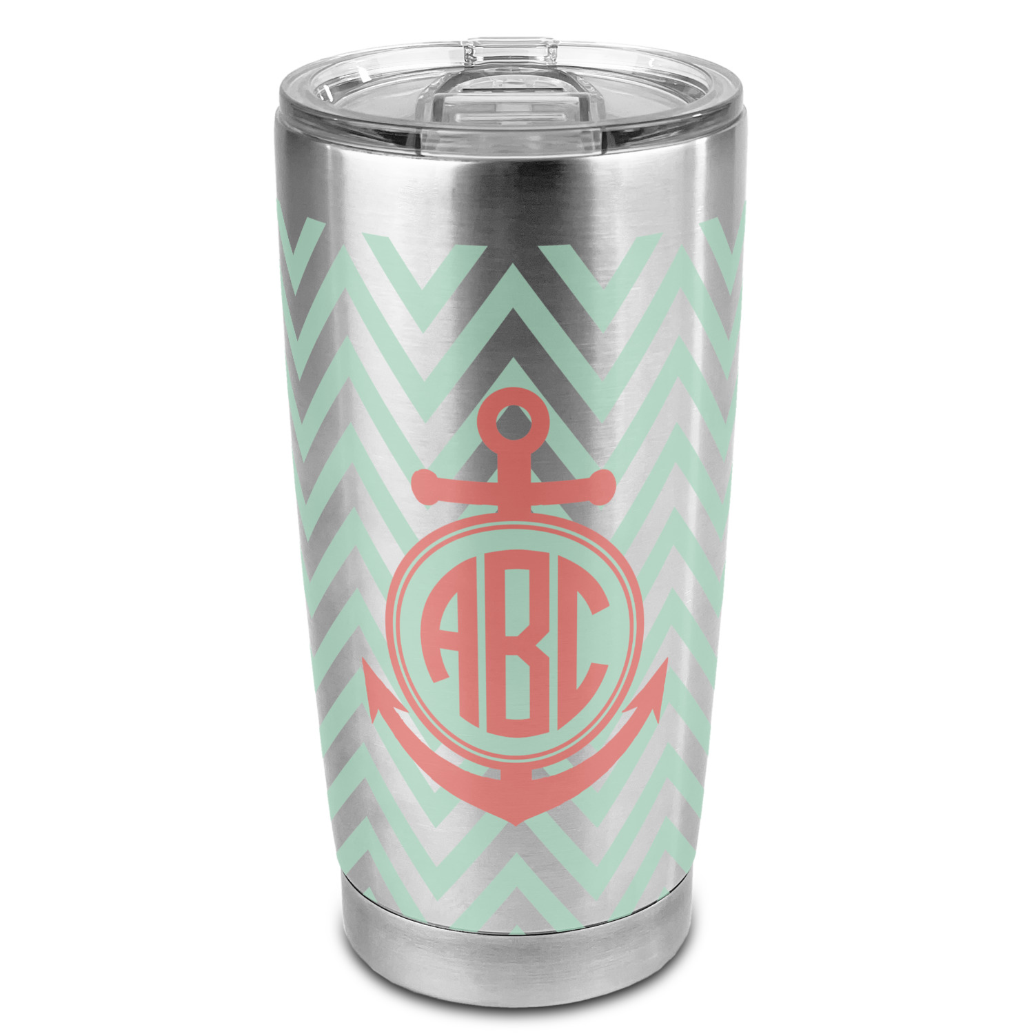 Keep up the trends with this Chevron & Anchor Design. This design features a coral anchor on a background of two tone mint chevron.