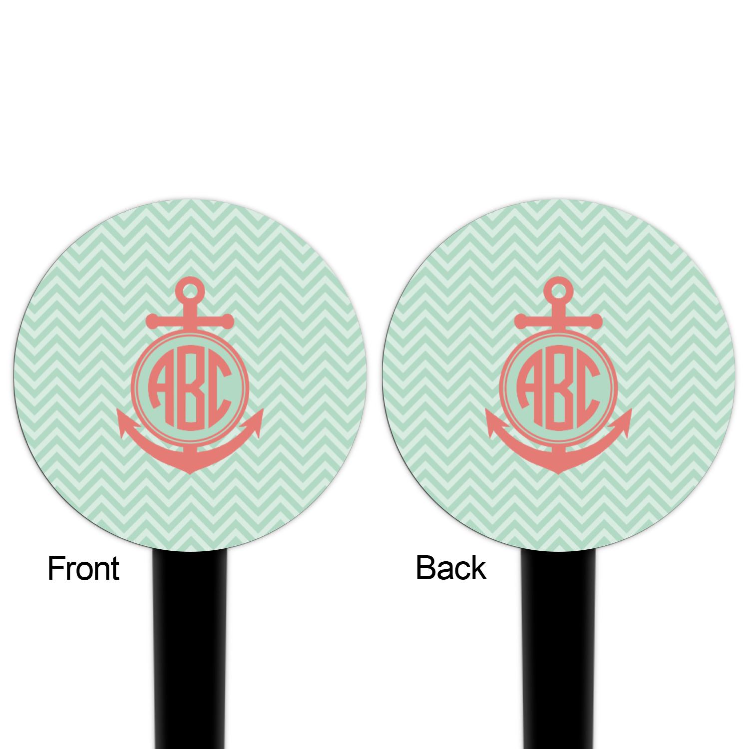 Coastal / Beach Style Designs for 4" Round Plastic Food Picks - Black - Double-Sided